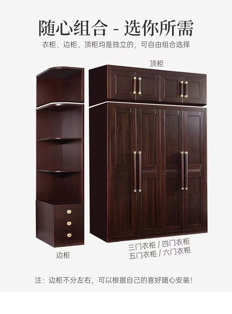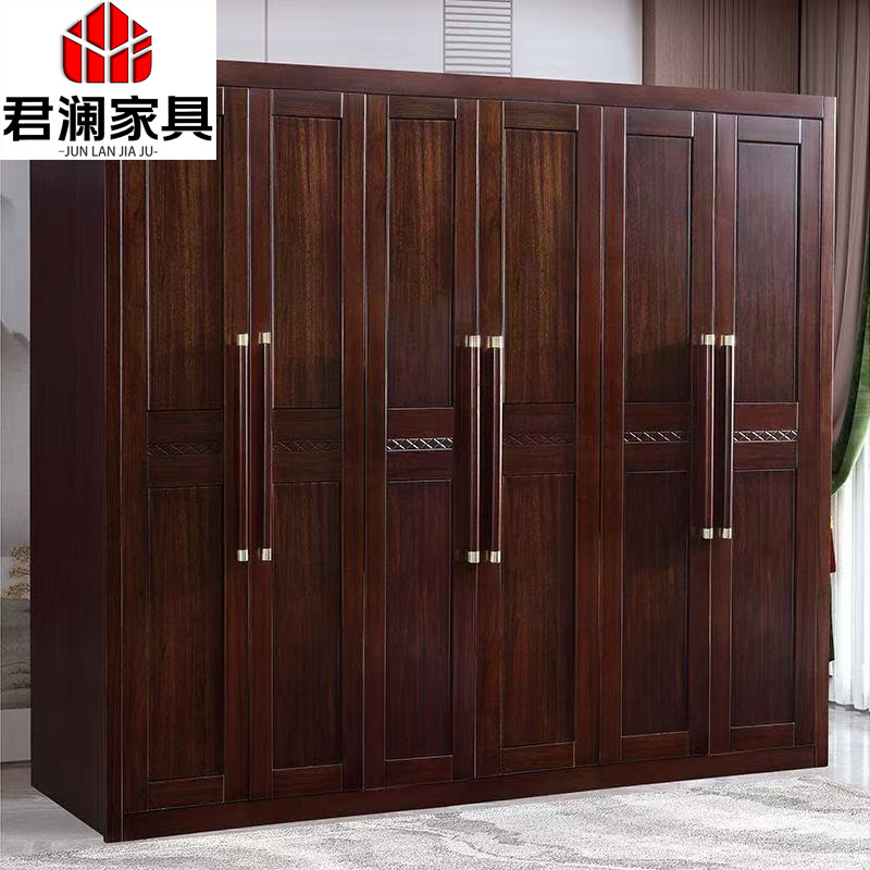 새로운 중국 스타일의 단단한 나무 옷장 Ebony 현대 대용량 옷장 침실 4 도어 나무 캐비닛 저장 가구스토어 가기
