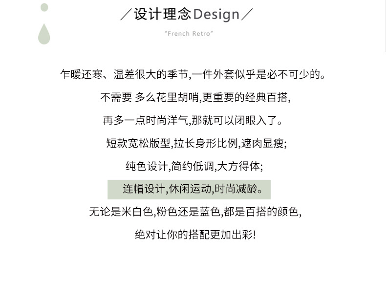 关于配饰:模特所佩戴的饰品为搭配效果,页面没有特殊说明即不作为销售及赠送。