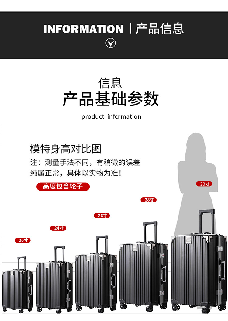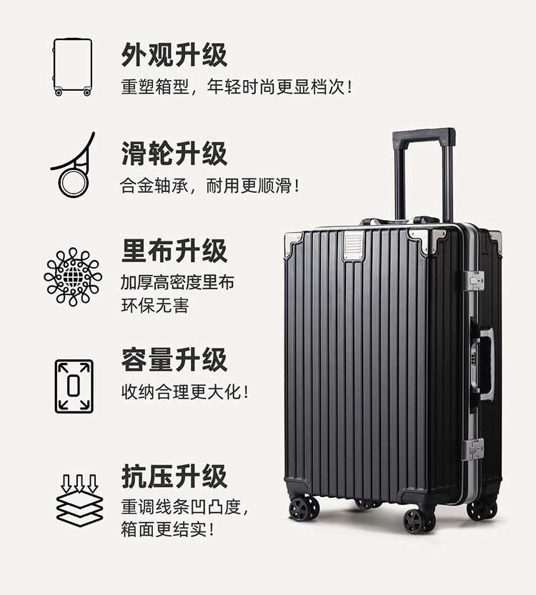 새로운 대용량 수하물 케이스 학생 수하물 케이스 남성 및 여성 지퍼 암호 상자 강력하고 내구성있는 여행 가방 유니버설 휠