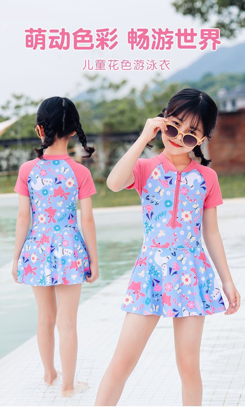아동용 전문 수영복, 여아용 원피스 자외선 차단 트레이닝 수영복, 아동용 수영을 위한 세련된 공주 스커트 수영복스토어 가기
