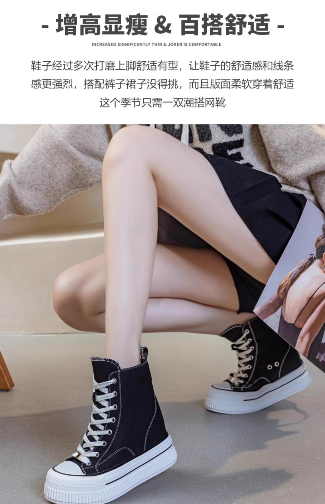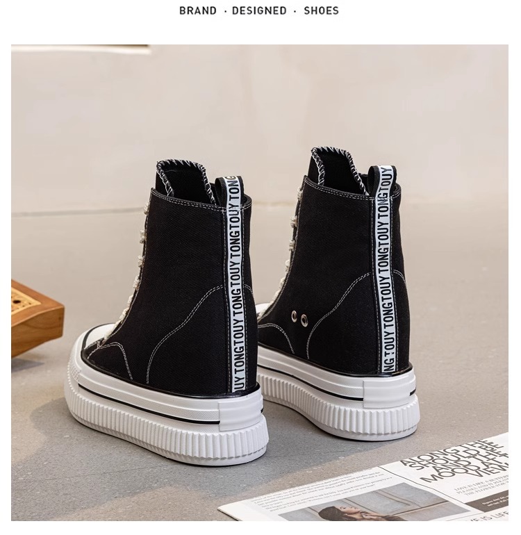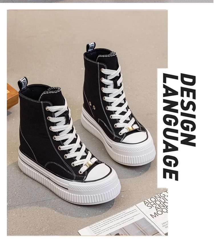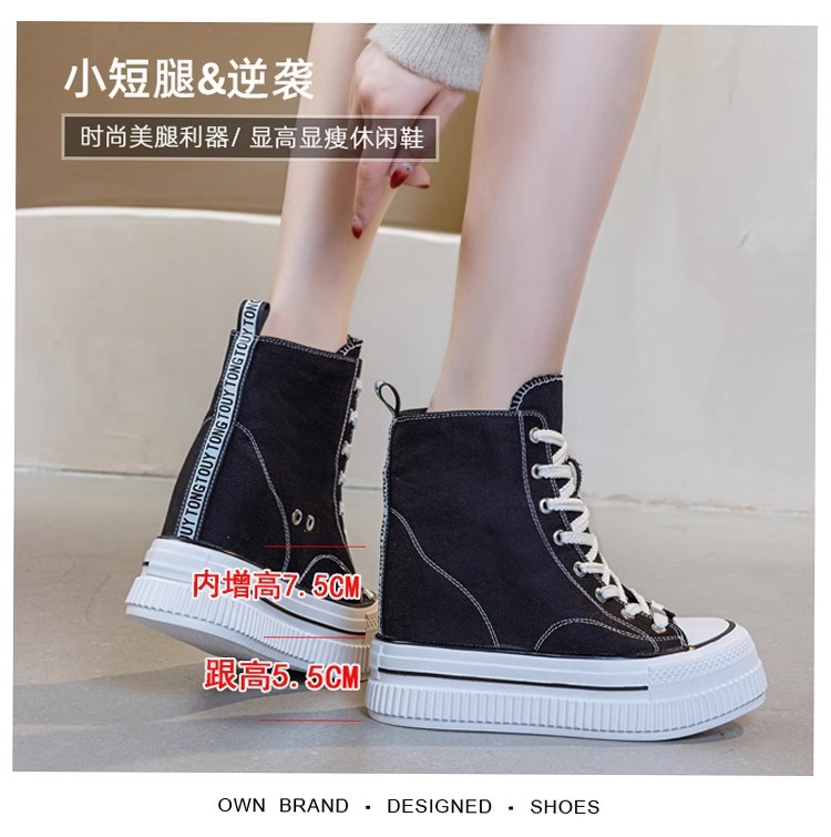 2025 플랫폼 캔버스 신발 여성의 봄과 가을 새로운 13cm 플랫폼 신발 올매치 높이 증가 캐주얼 슈퍼 하이힐 하이탑 신발스토어 가기