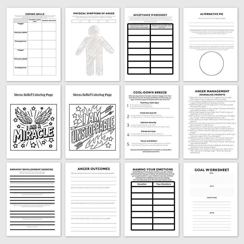 국경 간 신제품 ANGER MANAGEMENT WORK BOOK 분노 관리 작업 정신 건강 계획 도서