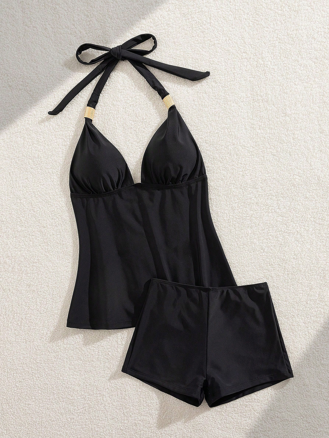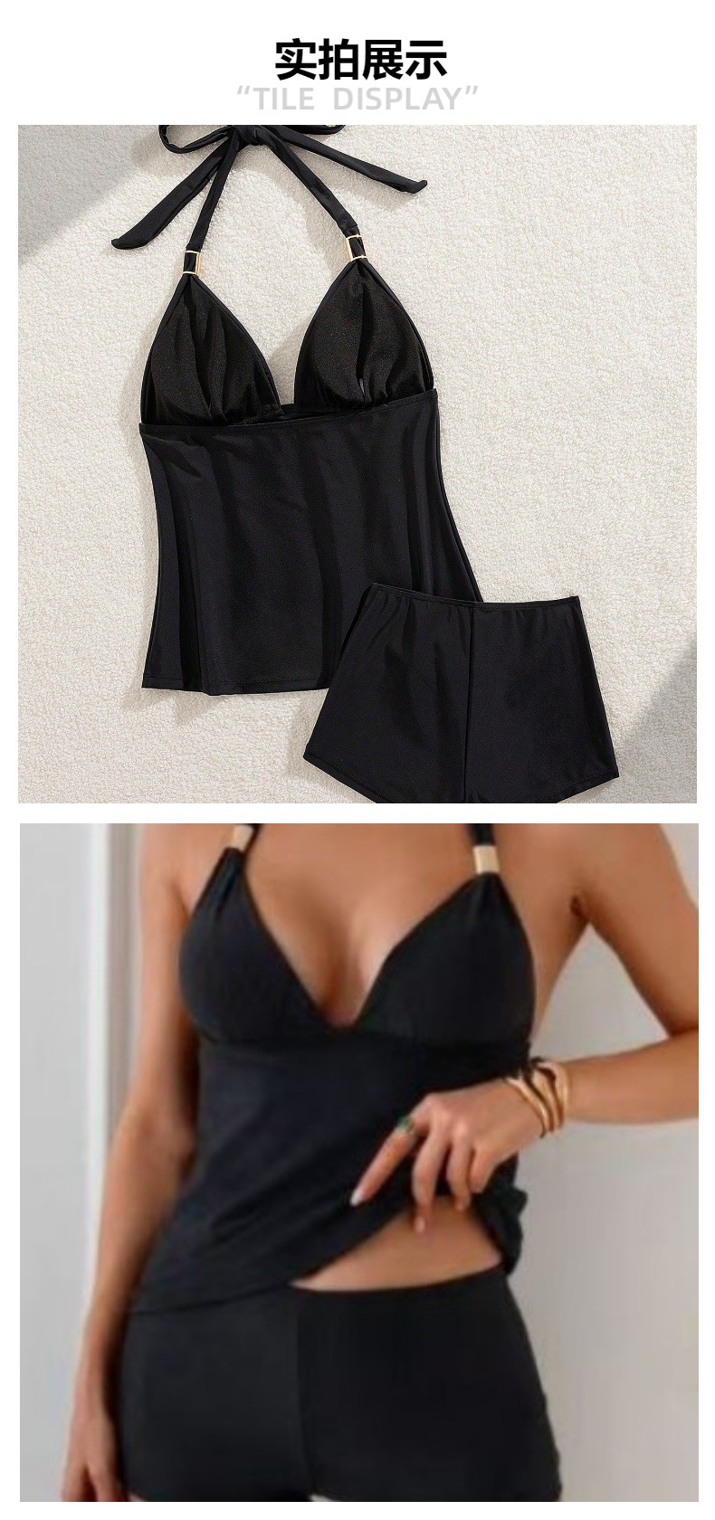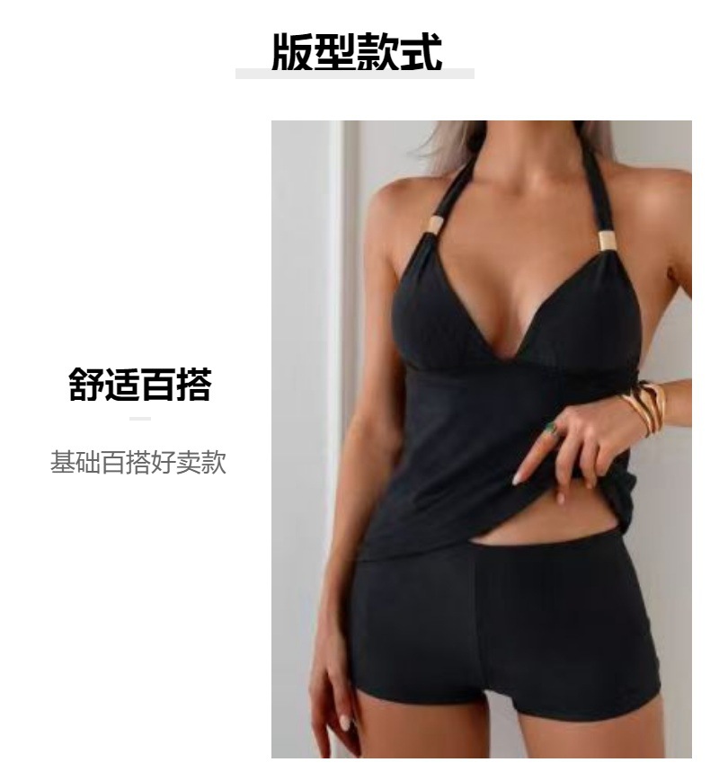 2026년 크로스보더 솔리드 컬러 수영복 유럽 및 미국 스타일 홀터넥 스트랩 스플릿 여성 수영복, 배를 가려주는 보수적인 디자인, 슬리밍 효과가 뛰어난 투피스 세트