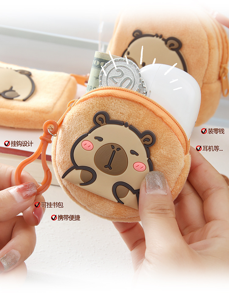귀여운 만화 기니피그 플러시 동전 지갑 미니 동전 보관 가방 학생용 휴대용 인스 스타일 이어폰 가방 도매
