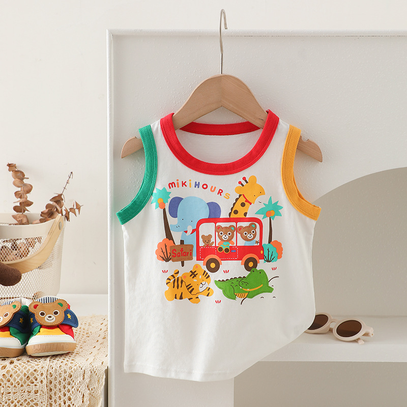 Mikihours 일본 아동복 여름 소년 소녀를위한 새로운 어린이 명암 색 조끼 순수 면 니트 웨이스트 코트스토어 가기
