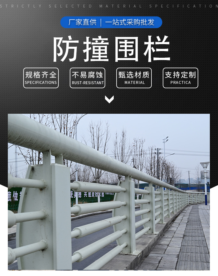 두꺼운 교량 충돌 방지 가드 레일 아연 도금 탄소강 가드 레일 도시 도로 안전 아연 강철 가드 레일 기둥 난간