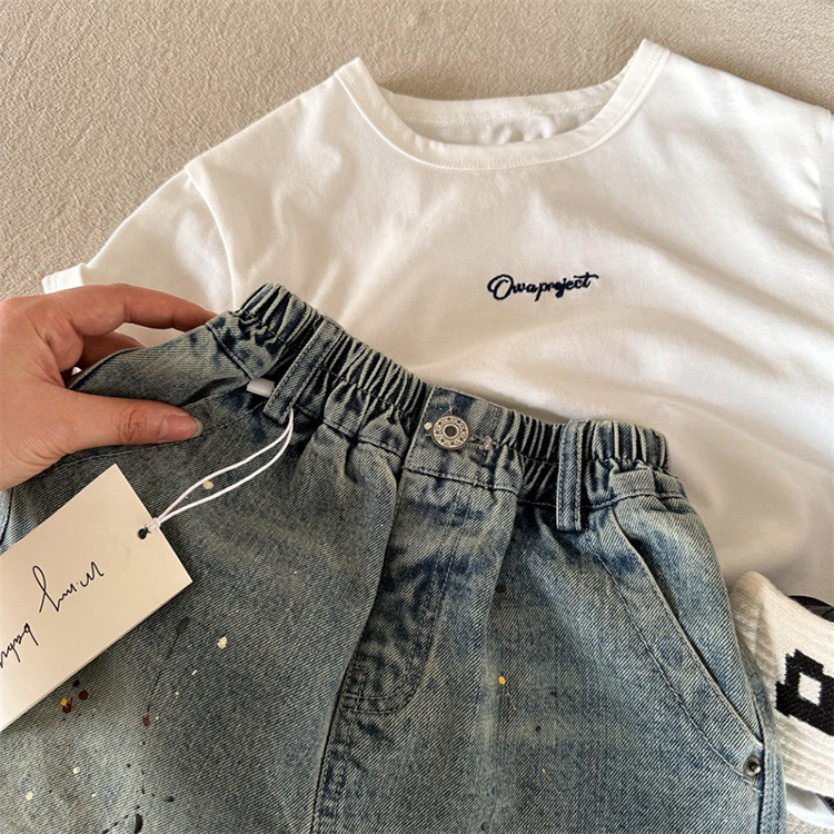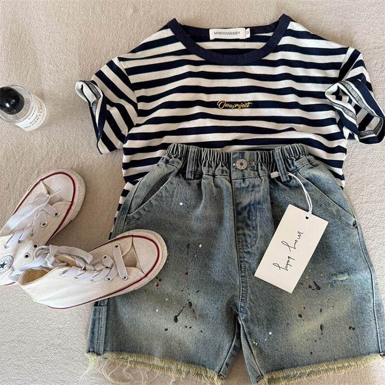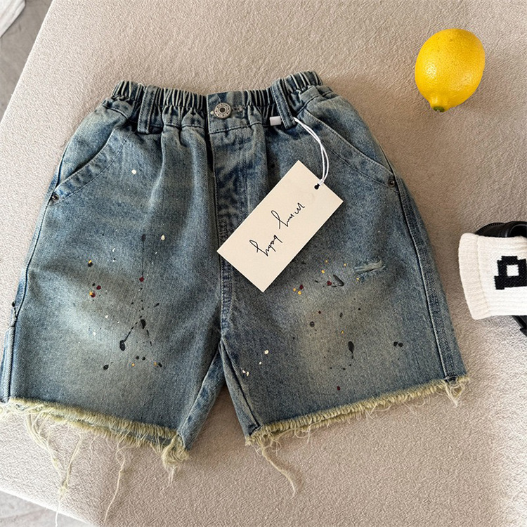 어린이 데님 반바지 새 여름 소년 소녀 스플래시 잉크 바지 늙은 한국 아기 랩 트렌디 바지스토어 가기