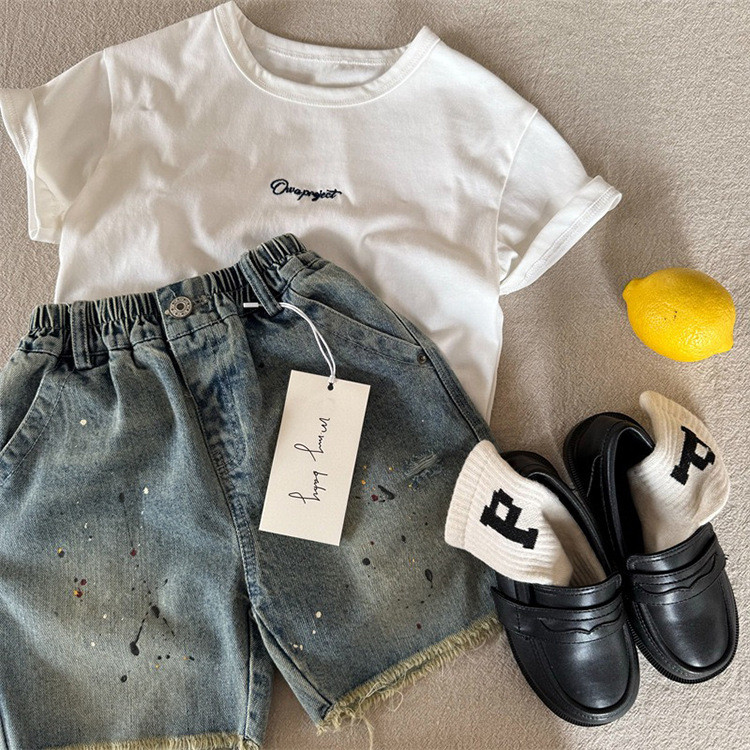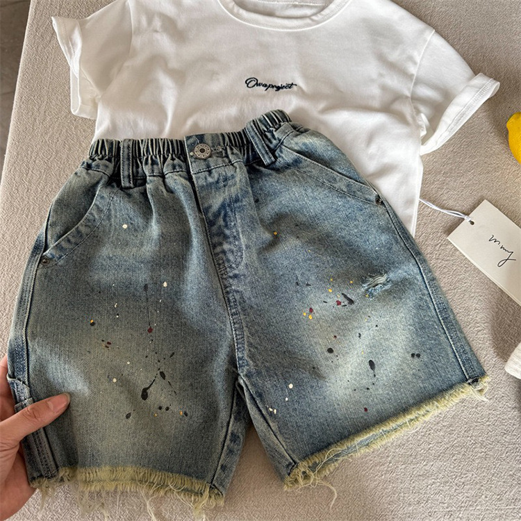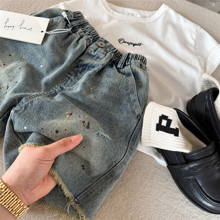 어린이 데님 반바지 새 여름 소년 소녀 스플래시 잉크 바지 늙은 한국 아기 랩 트렌디 바지
