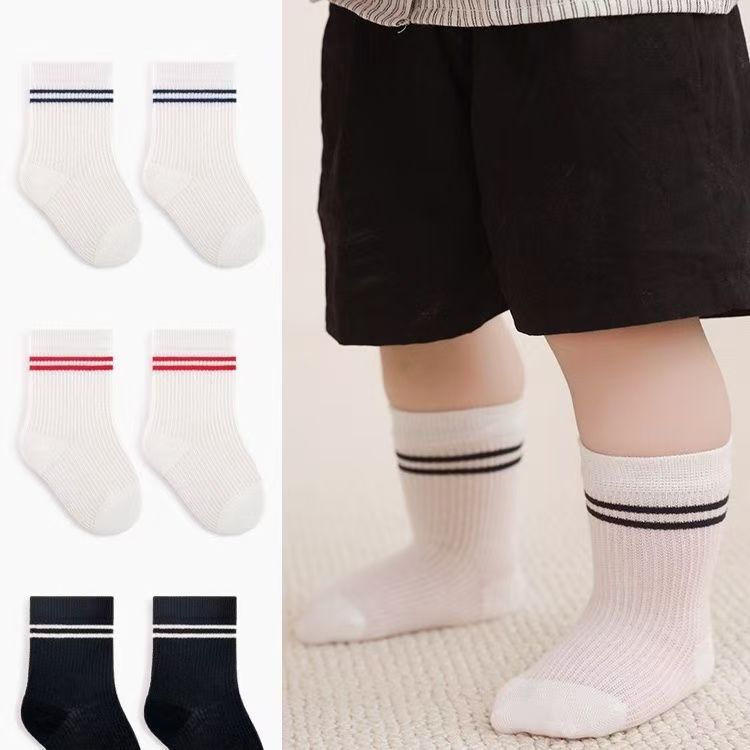 어린이 스타킹 여름 얇은 메쉬 통기성 아기 양말 대학 스타일 뼈없는 코튼 스트라이프 학생 양말