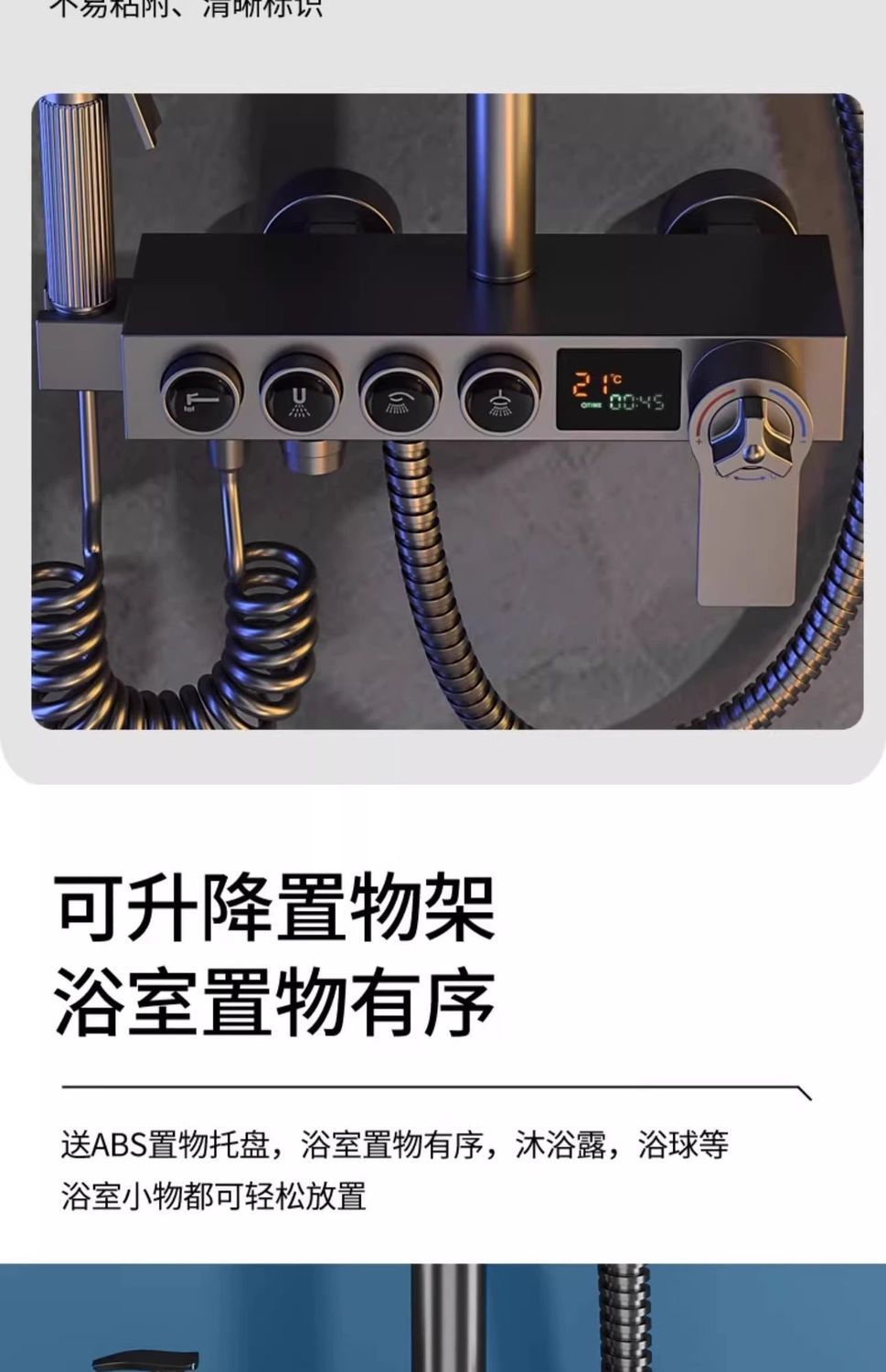 • 둥근 버튼 4단계 디지털 디스플레이 항온 샤워 세트
