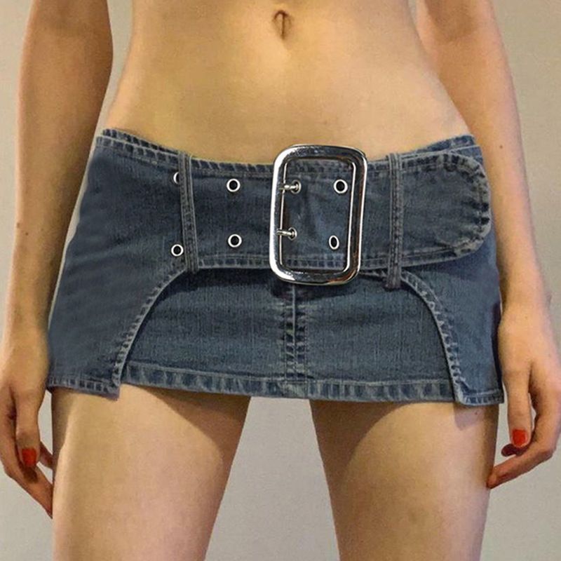 국경을 넘나 드는 유럽과 미국의 패션 스트리트 스타일 대형 브레스트 울트라 쇼트 데님 스커트 섹시한 낮은 허리 슬림 하프