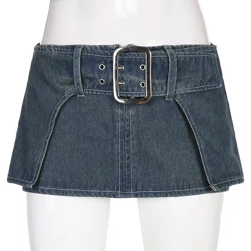 국경을 넘나 드는 유럽과 미국의 패션 스트리트 스타일 대형 브레스트 울트라 쇼트 데님 스커트 섹시한 낮은 허리 슬림 하프스토어 가기