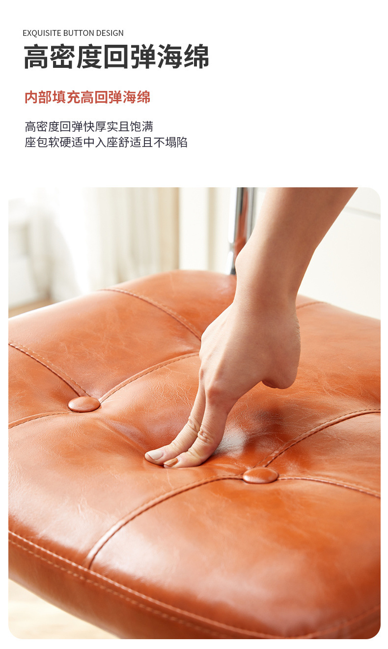• [원목] 월넛 컬러 등받이 - 브라운 브라이트 가죽 시트쿠션 - 골드 프레임