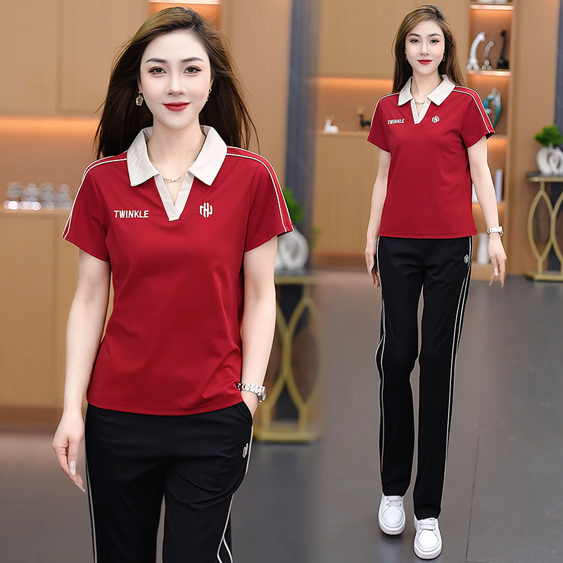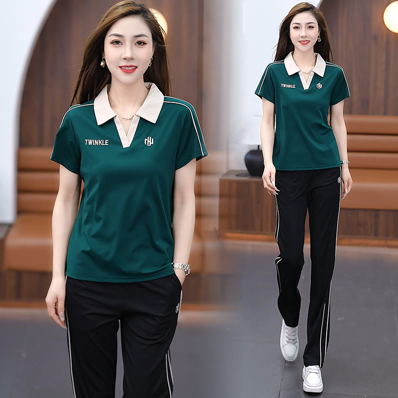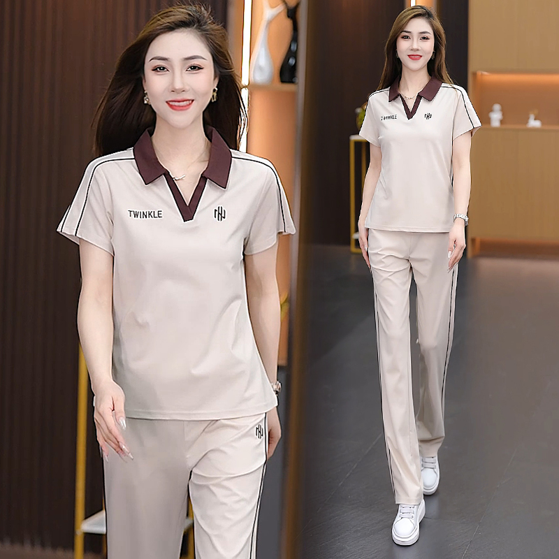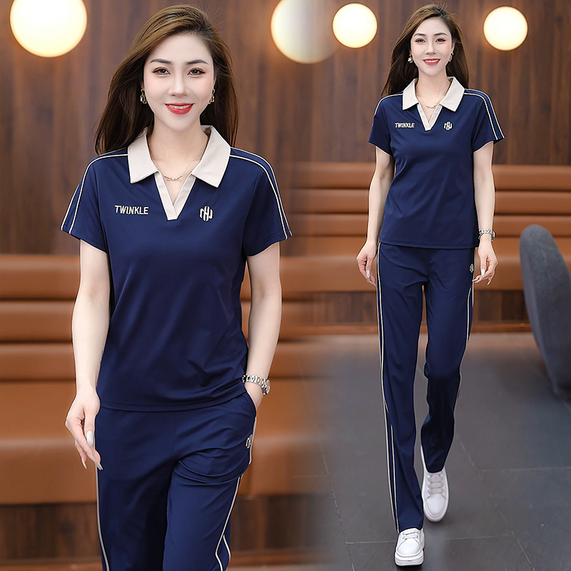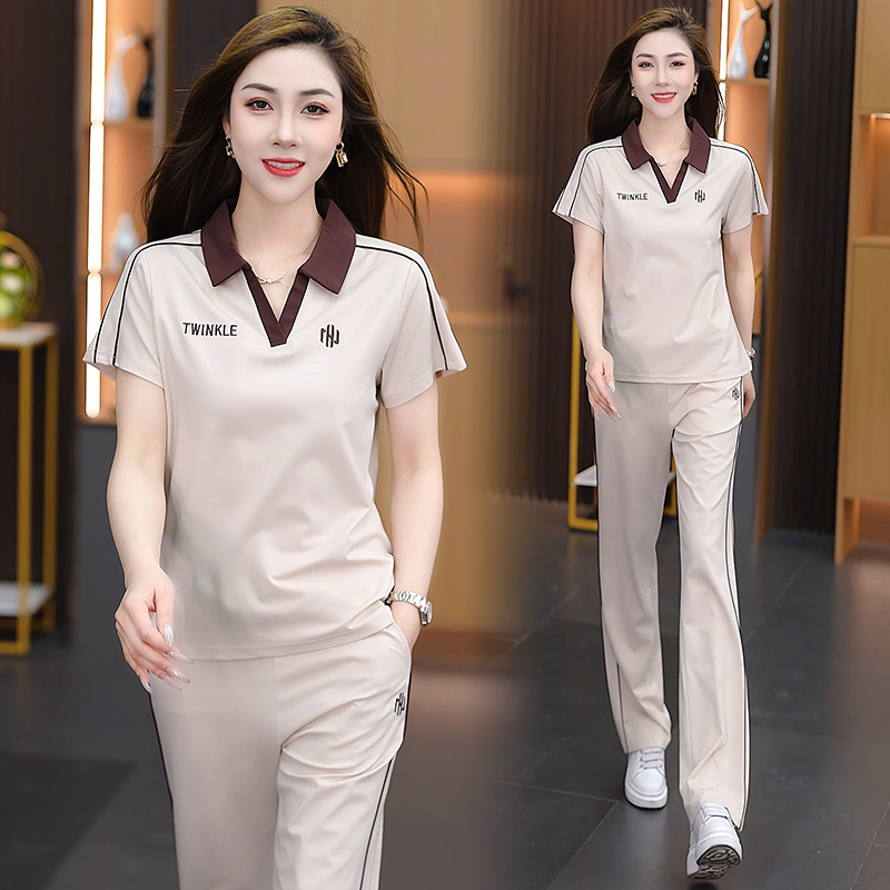 아이스 실크 캐주얼 스포츠 세트 여자 2025 년 여름 새로운 유행 슬리밍 반팔 와이드 레그 바지 트렌디 한 투피스 세트