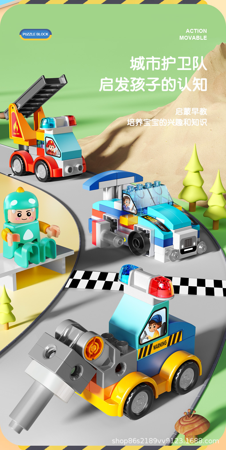 Feile 다양한 로봇 대형 빌딩 블록 소방차 경찰차와 호환 가능 어린이 교육 조립 장난감 소년