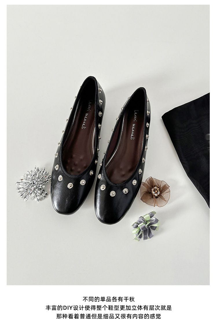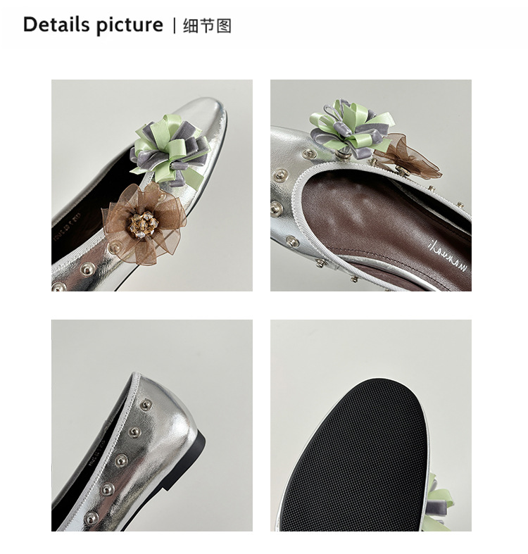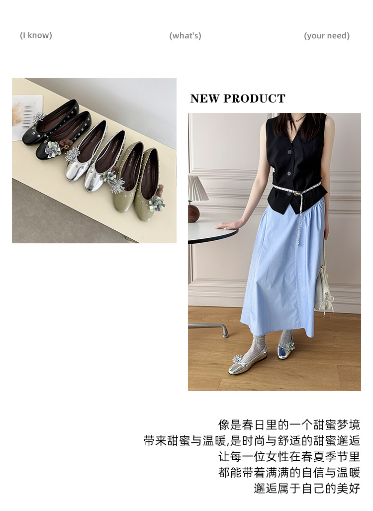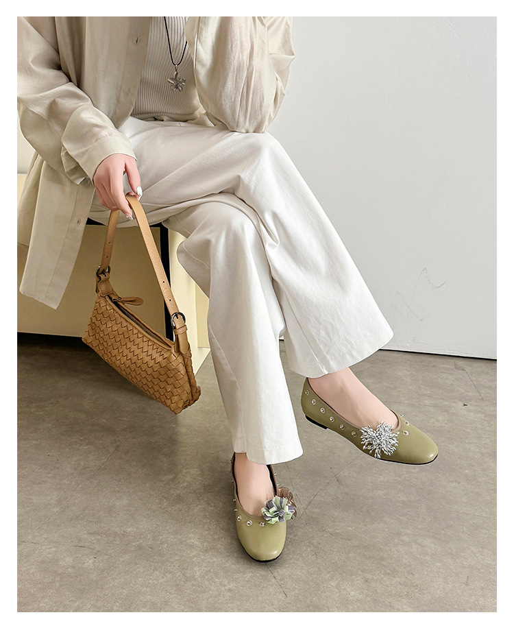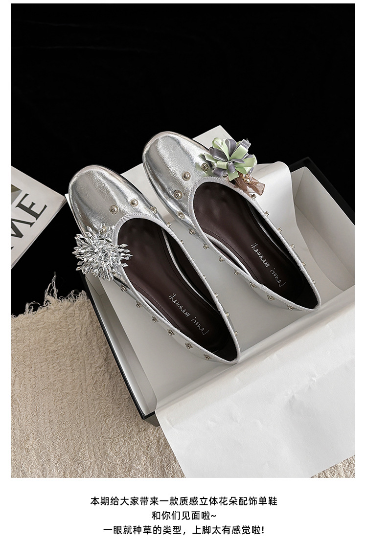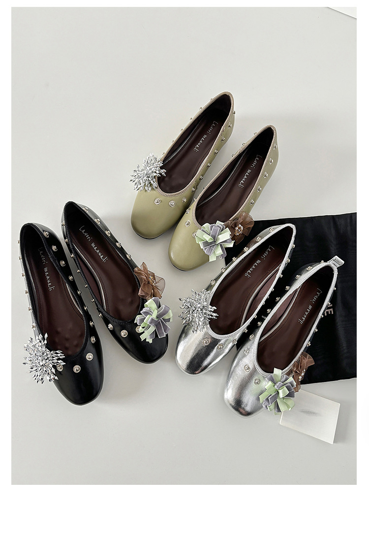 틈새 디자인 꽃 라인석 메리 제인 신발 요정 스타일 플랫 하단 라운드 머리 슬립 온 발레 신발 여성