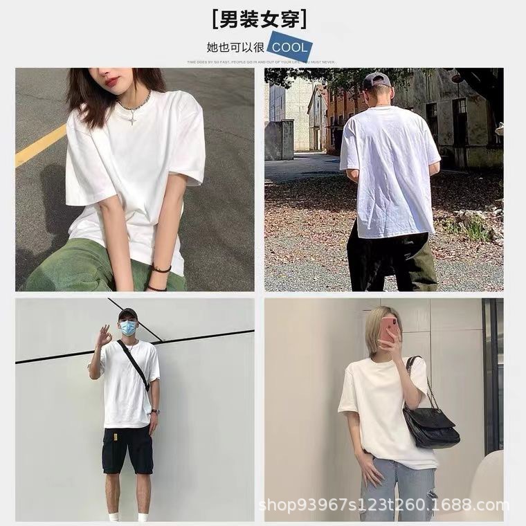 300g 신장 코튼 헤비 반팔 t 두꺼운 남성과 여성의 바닥 셔츠 여름 라운드 넥 기본 티셔츠 미국스토어 가기
