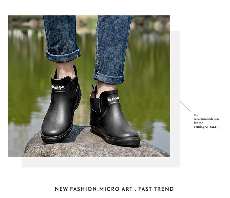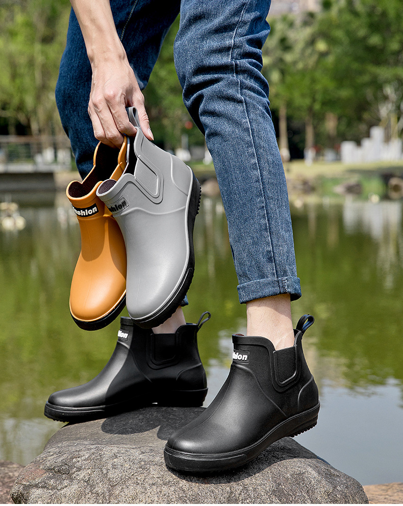 남성용 크로스보더 아웃도어 레인슈즈, 패셔너블한 숏컷 트렌디 방수화, 내마모성 고무신, 미끄럼 방지 주방 작업화, 내구성 강함