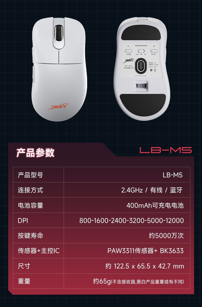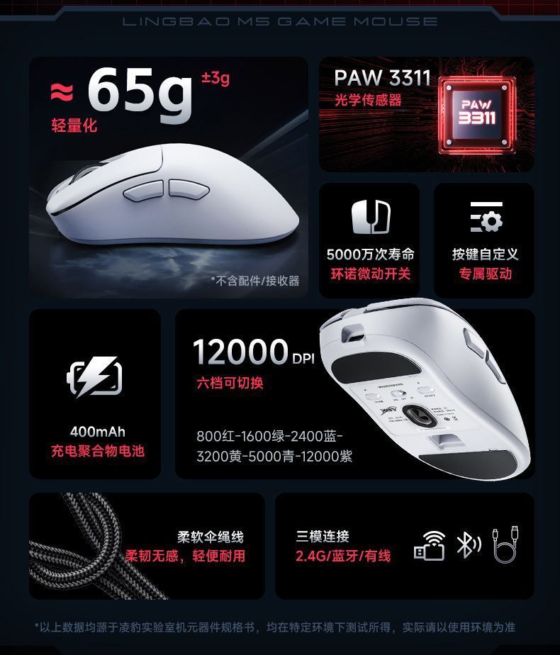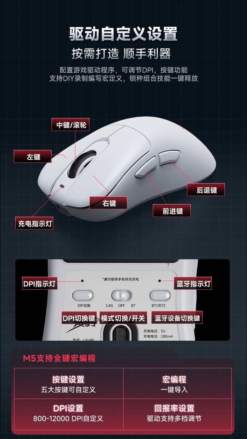 링 바오 M5ProMax 무선 마우스 3 모드 경량 마우스 특수 매크로 프로그래밍 E 스포츠 게임 충전식스토어 가기