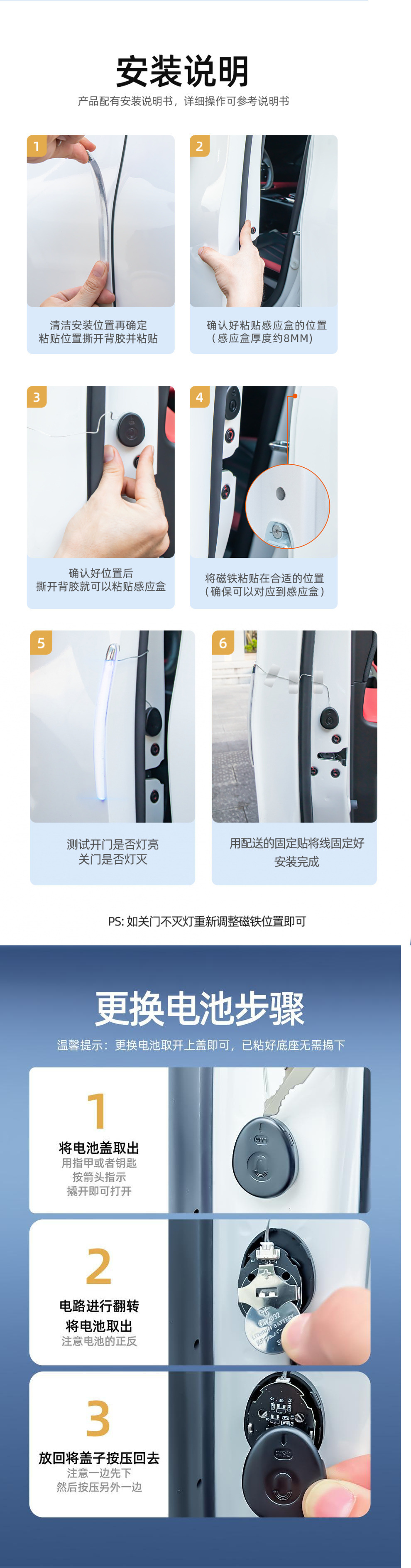 자동차 도어 충돌 방지 스트립, 도어 가장자리 긁힘 방지 자동차 스티커, 보호 스트립, 경고 센서 라이트, 후방 충돌 방지 및 충돌 방지 유물