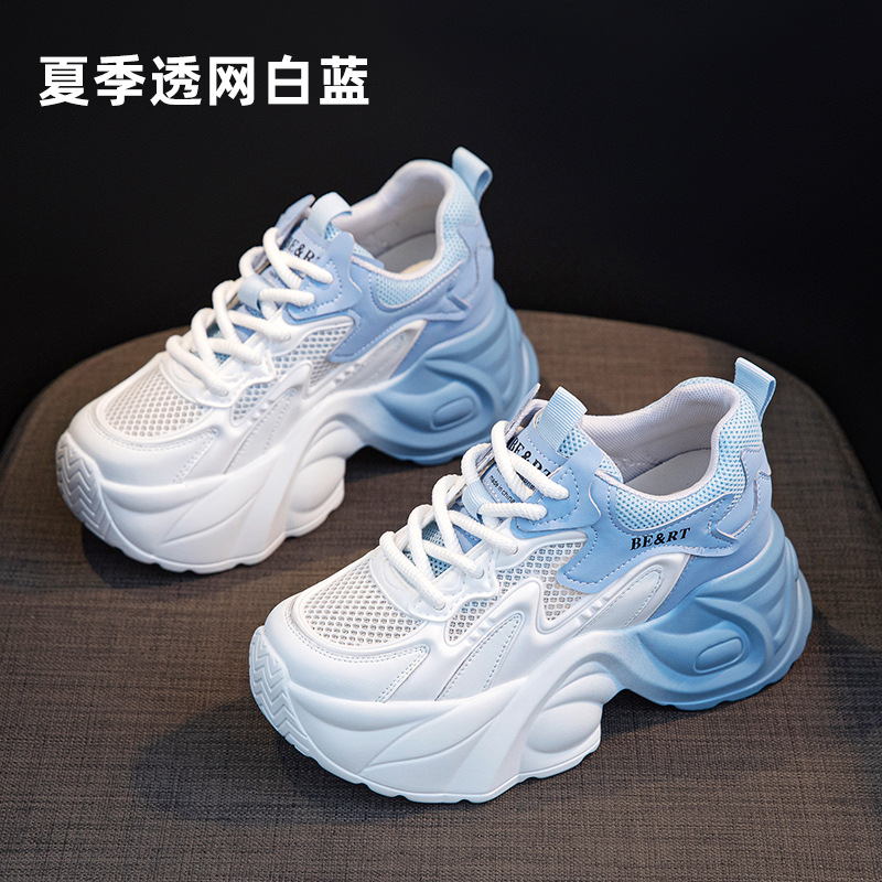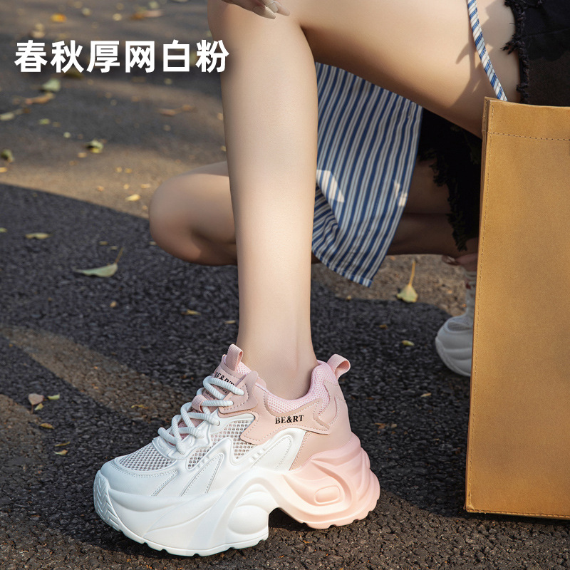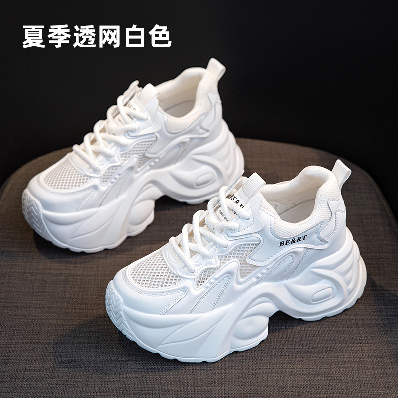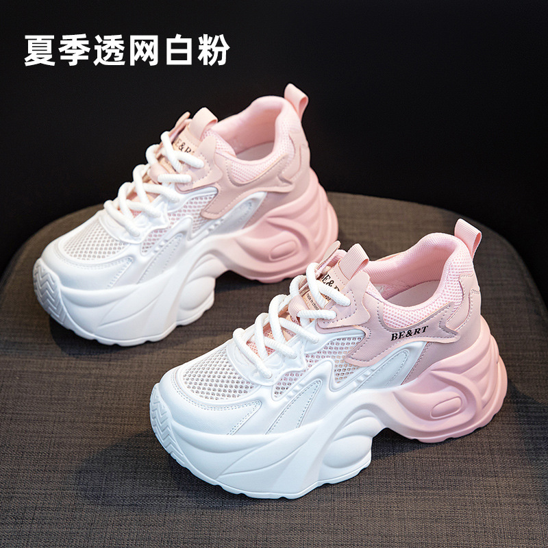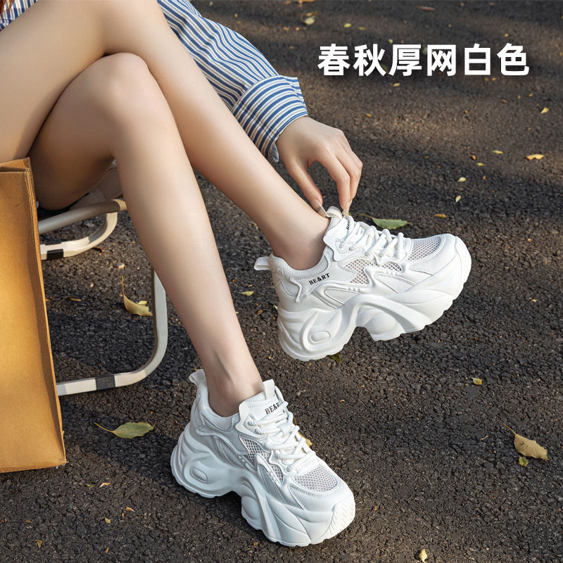 여성용 두꺼운 밑창 아빠 신발 2025 봄 신상품 키가 작은 여성용 메쉬 캐주얼 플랫폼 신발, 키가 크고 슬림해 보이는 여성용 메쉬 신발스토어 가기