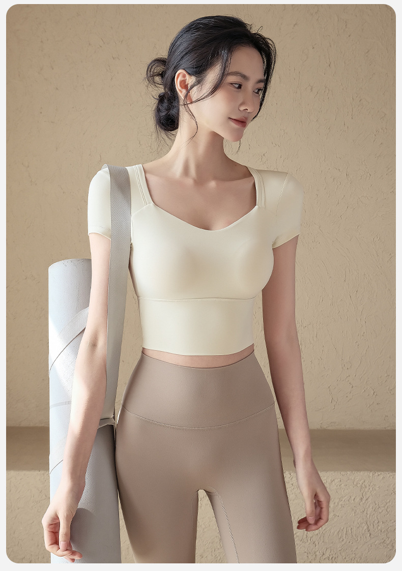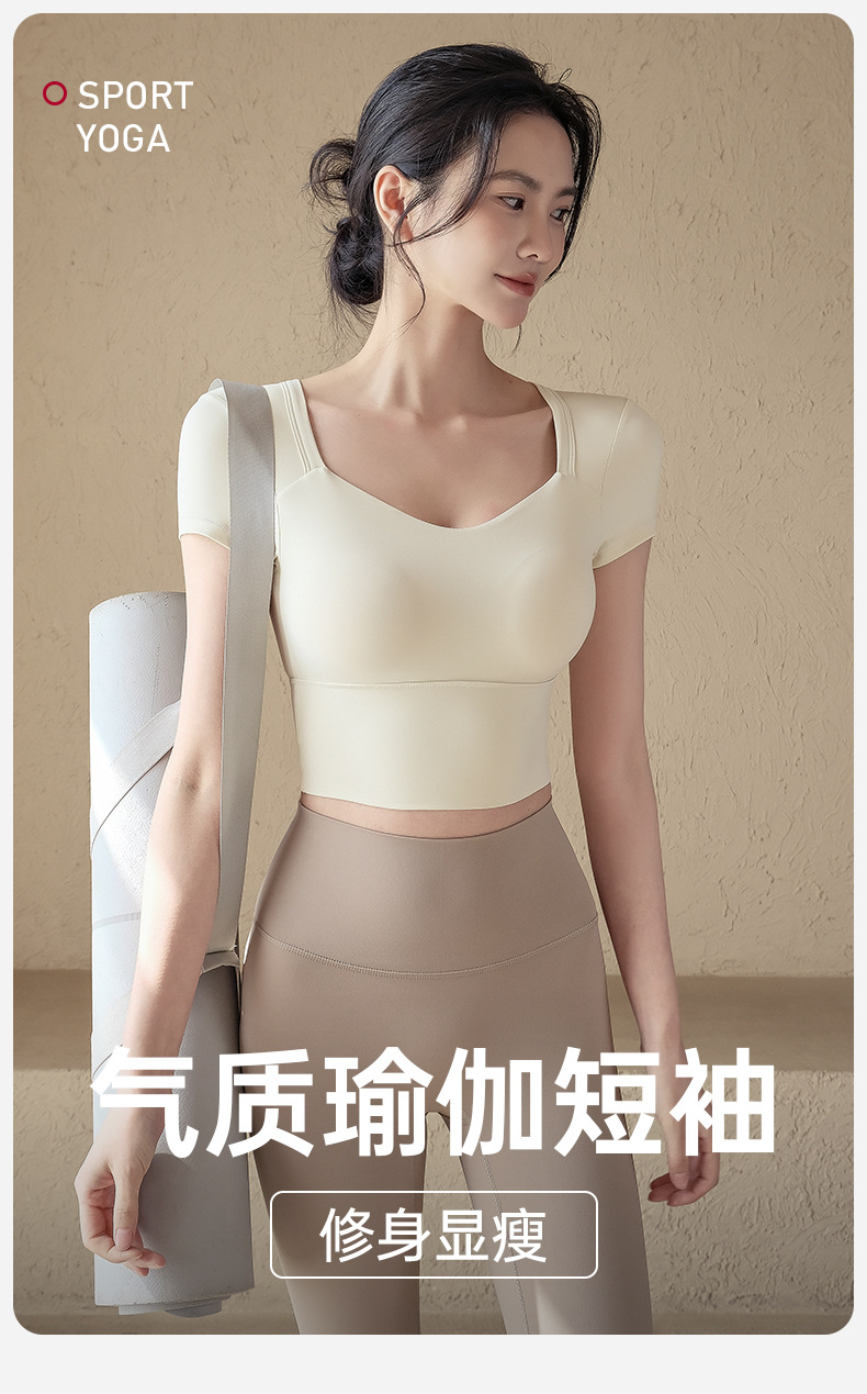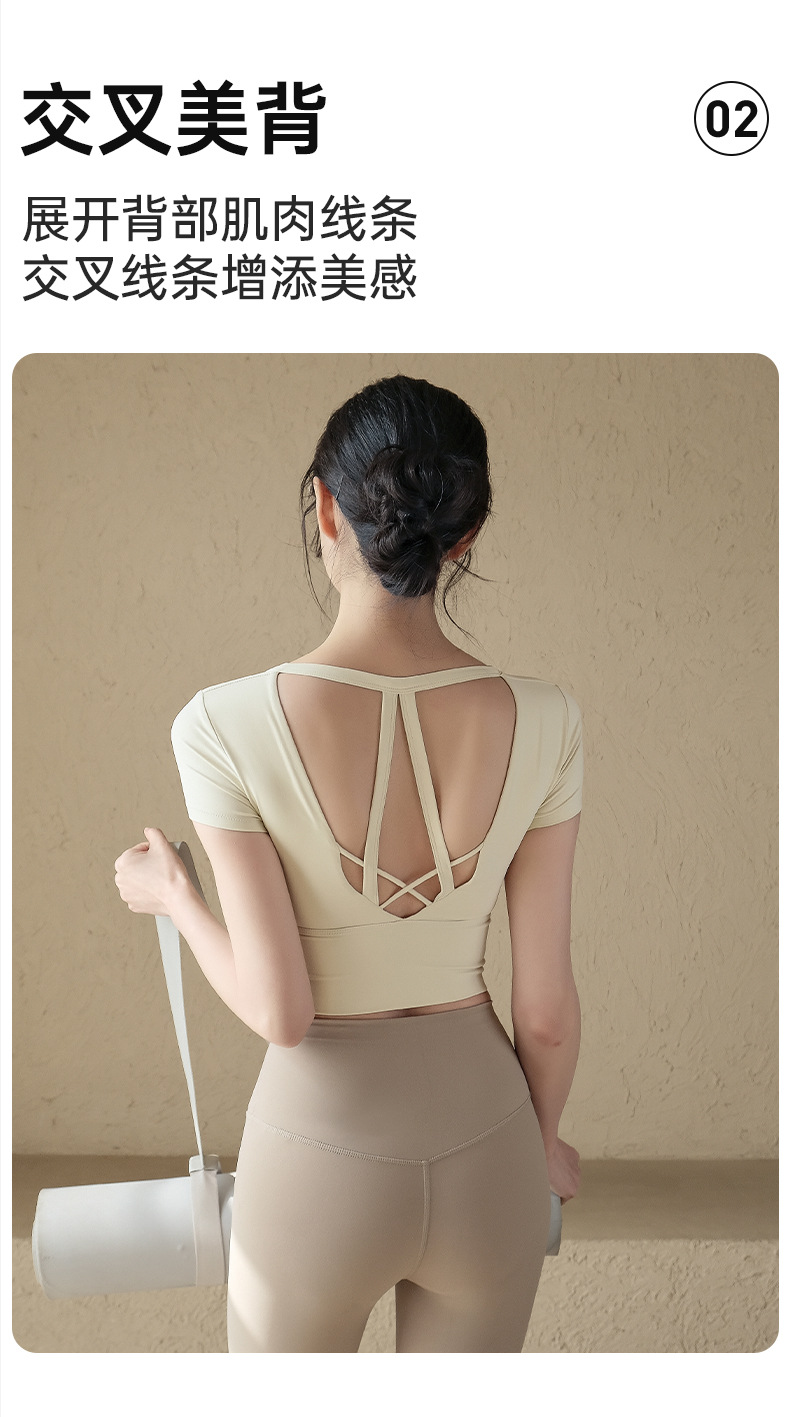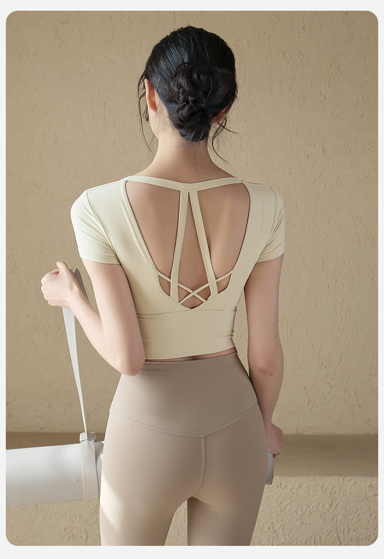 여름 허리 짧은 통기성 스포츠 티셔츠 필라테스 피트니스 훈련을위한 가슴 패드와 여성 요가 반팔 2025스토어 가기
