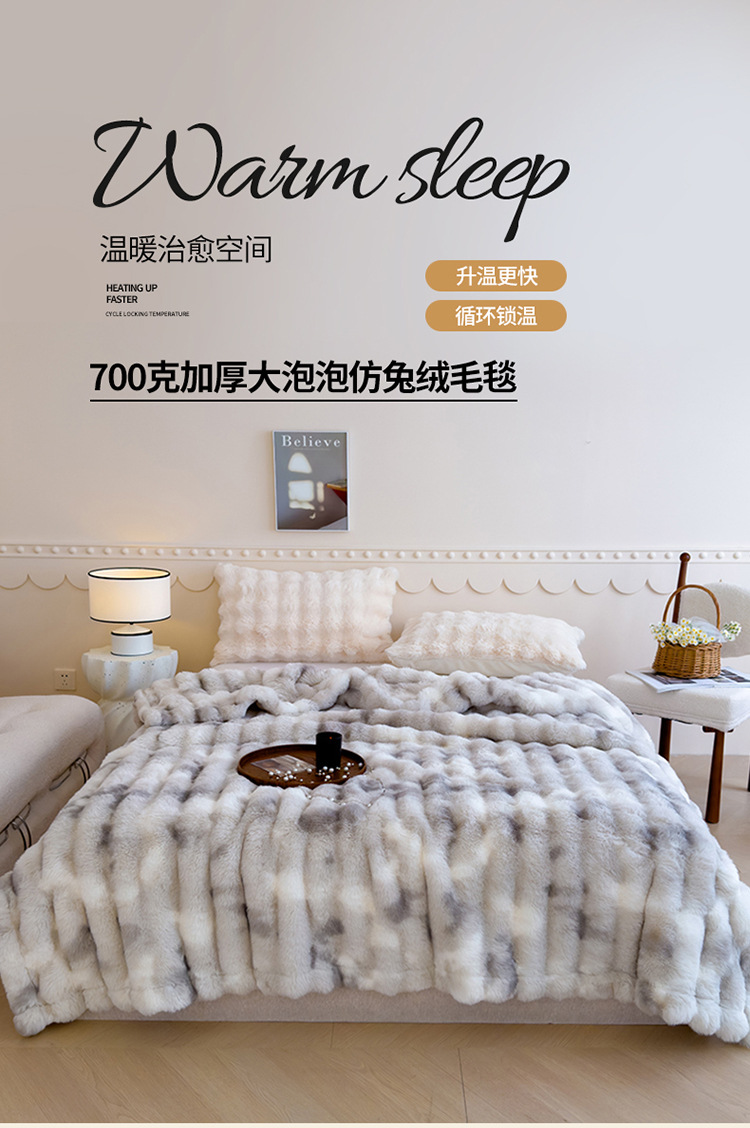 맞춤형 가공 샘플 대형 거품 모방 푹신한 담요 공장 무료 샘플 수평 침대 끝 장식 담요 맞춤스토어 가기
