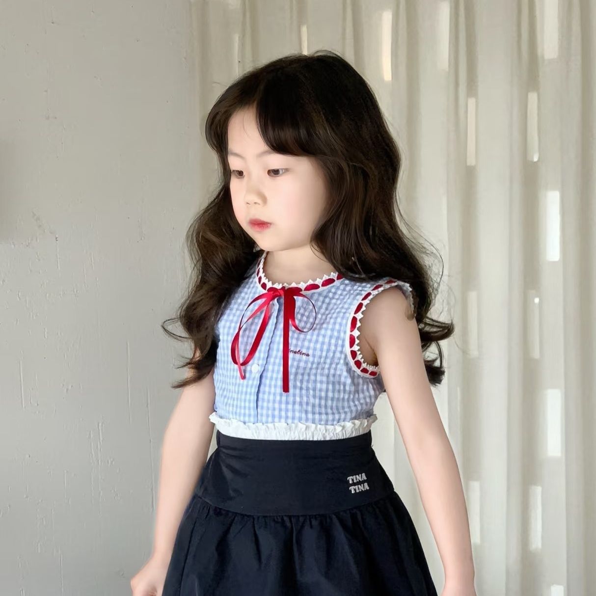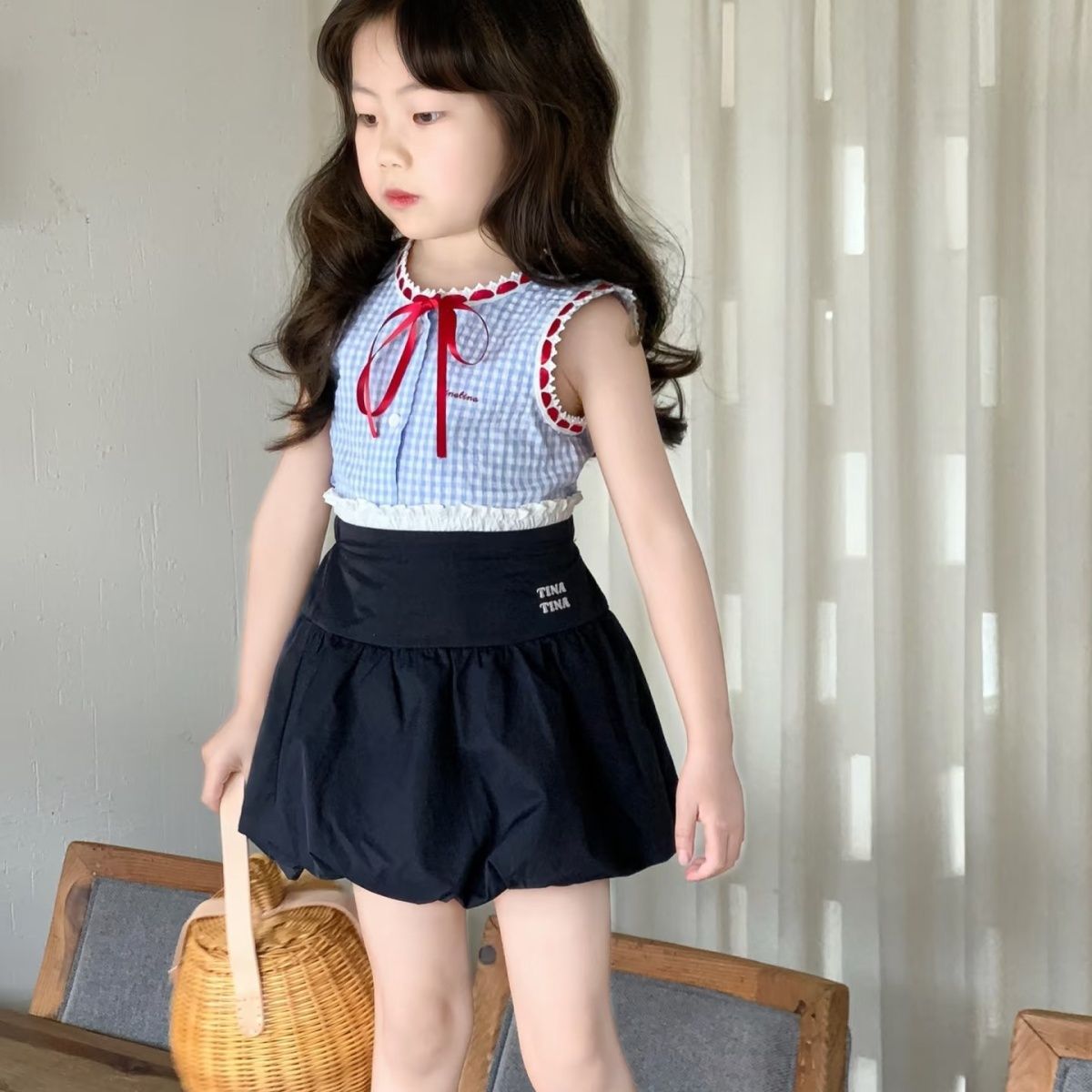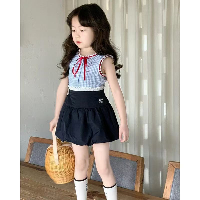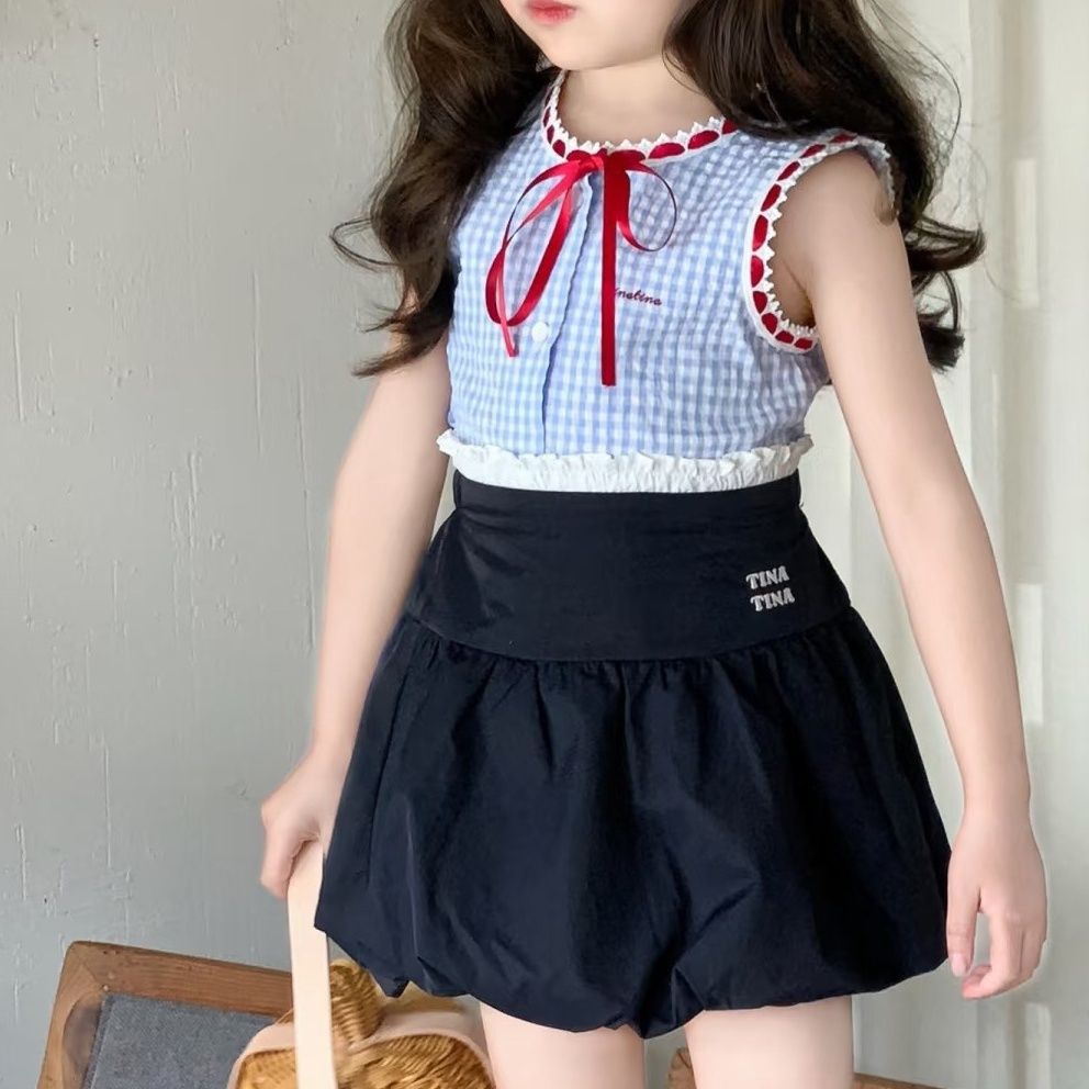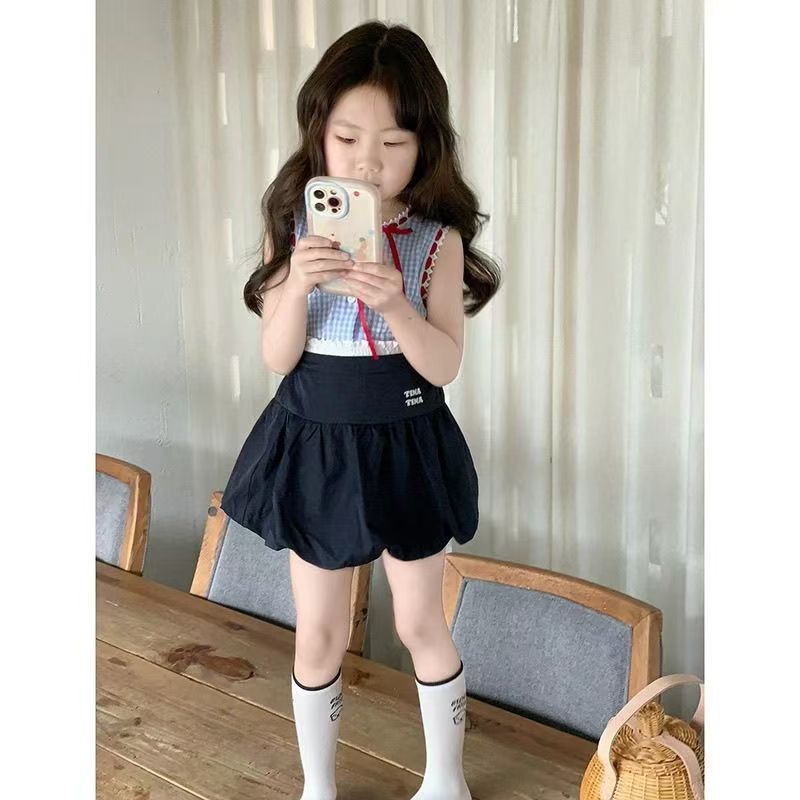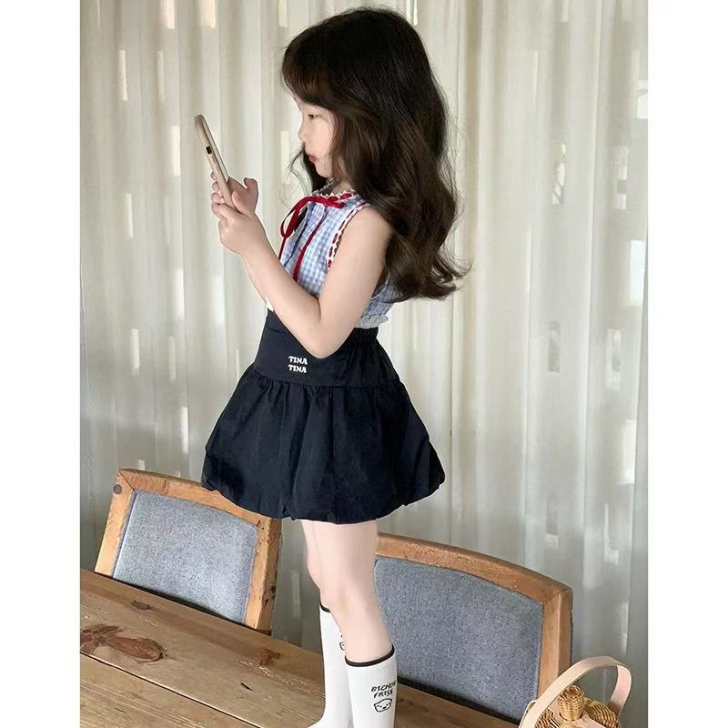 어린이 여름 세트 2025 새로운 세련된 한국 스타일 소녀 조끼 유행 여름 스커트 아기 소녀의 투피스 세트