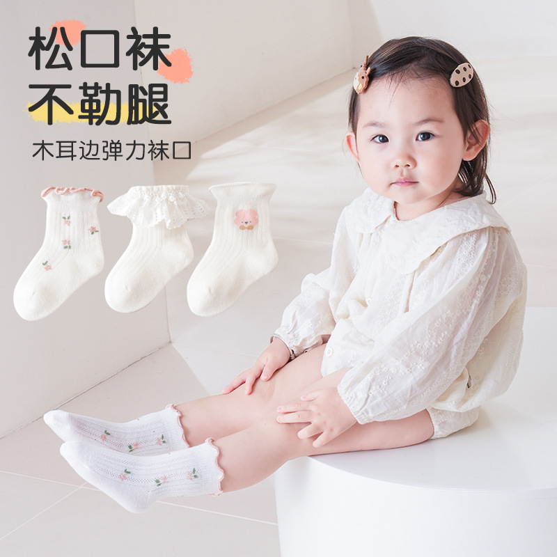 아기 양말 봄과 여름 뼈없는 얇은 흰색 높은 양말 귀여운 레이스 여성 아기 공주 양말 여름 모기 양말스토어 가기