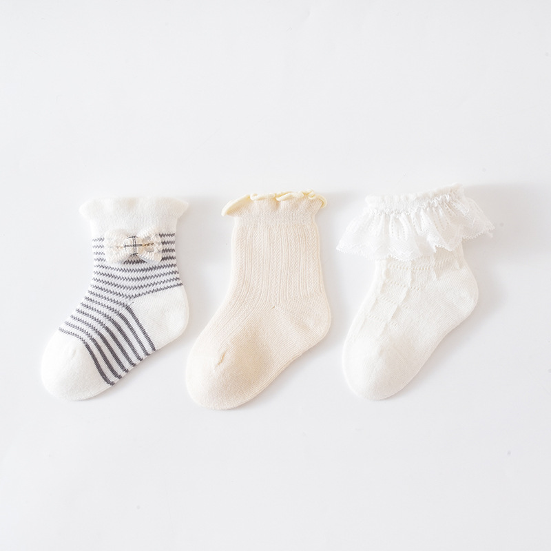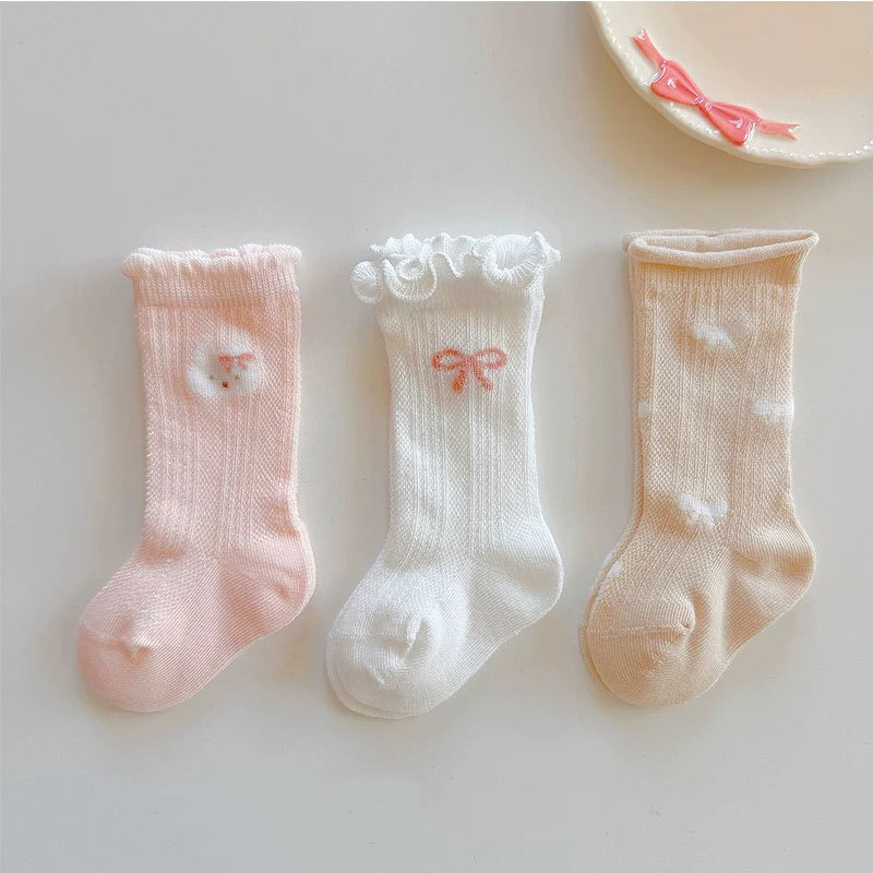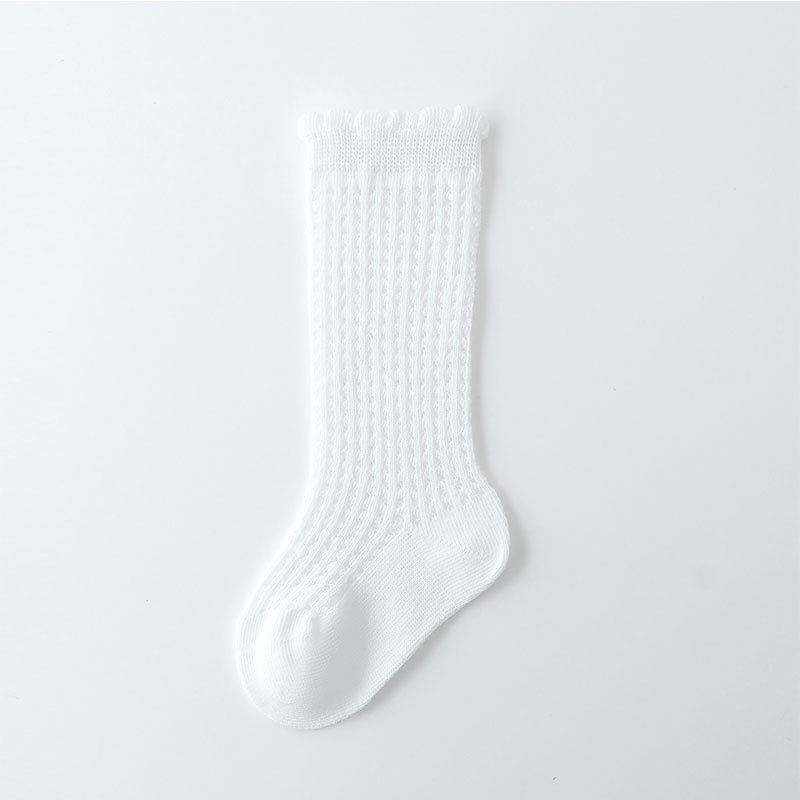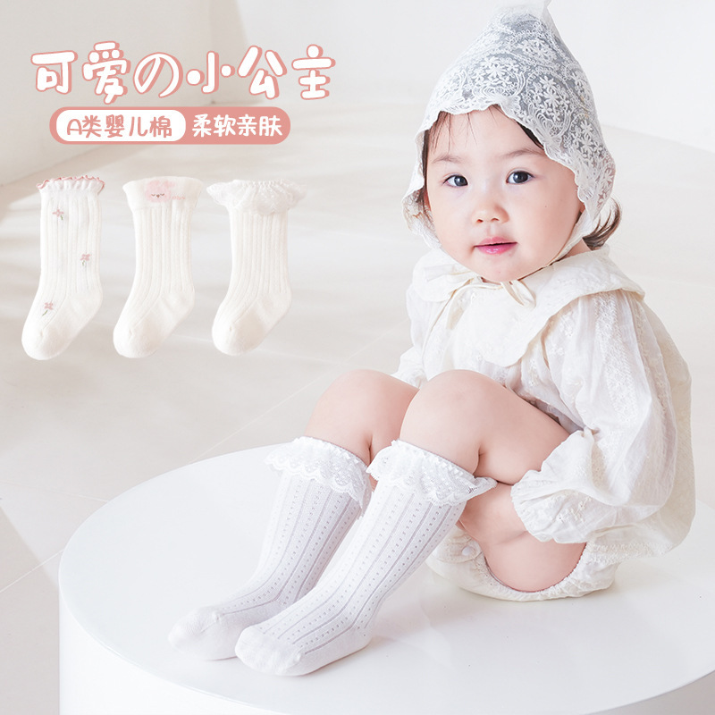 아기 양말 봄과 여름 뼈없는 얇은 흰색 높은 양말 귀여운 레이스 여성 아기 공주 양말 여름 모기 양말