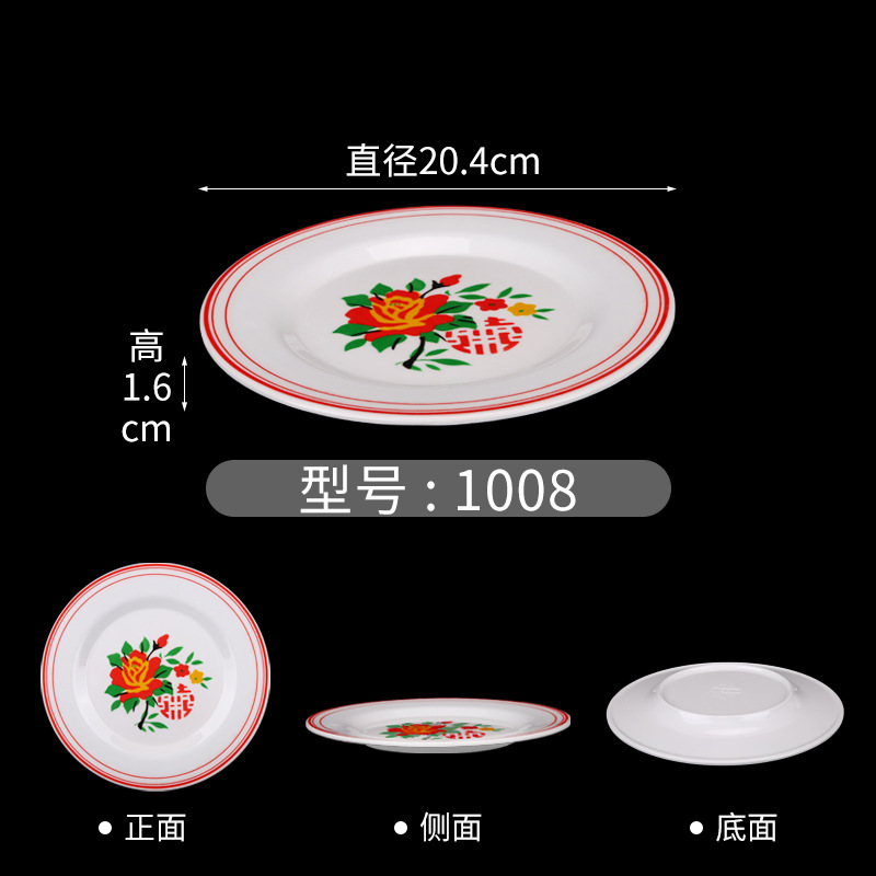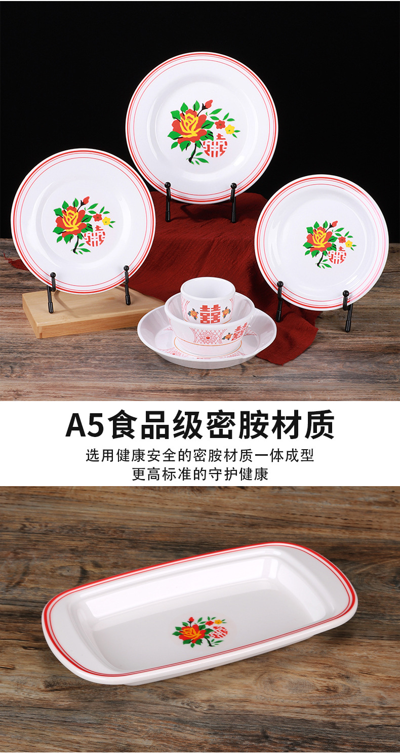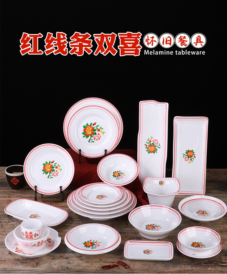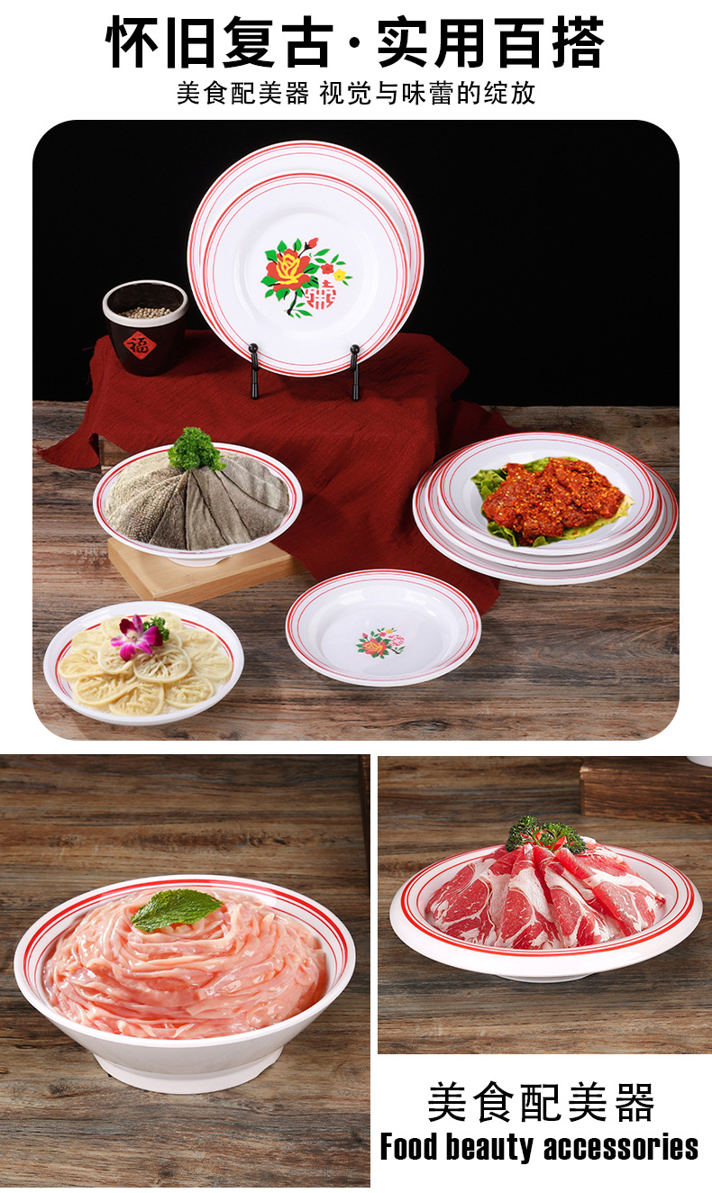 멜라민 복고풍 향수를 불러 일으키는 이중 행복 플레이트 그물 붉은 냄비 가게 디스크 스낵 플레이트 쇠고기 헹굼 고기 접시 거위 소시지 플레이트스토어 가기