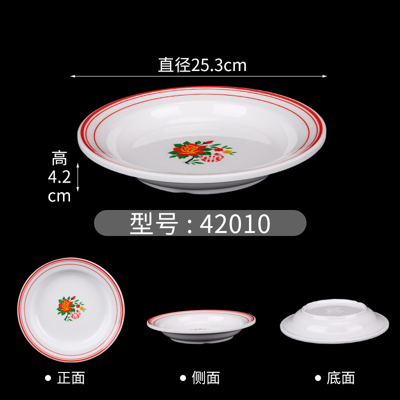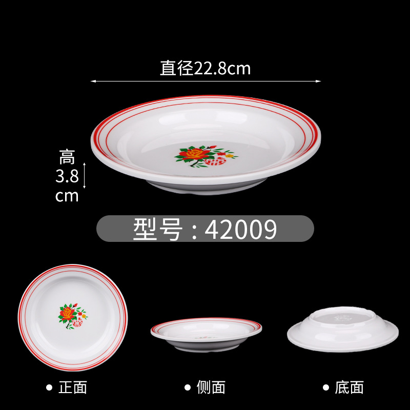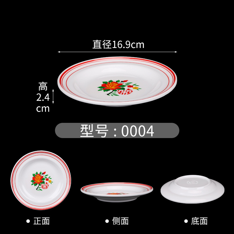 멜라민 복고풍 향수를 불러 일으키는 이중 행복 플레이트 그물 붉은 냄비 가게 디스크 스낵 플레이트 쇠고기 헹굼 고기 접시 거위 소시지 플레이트
