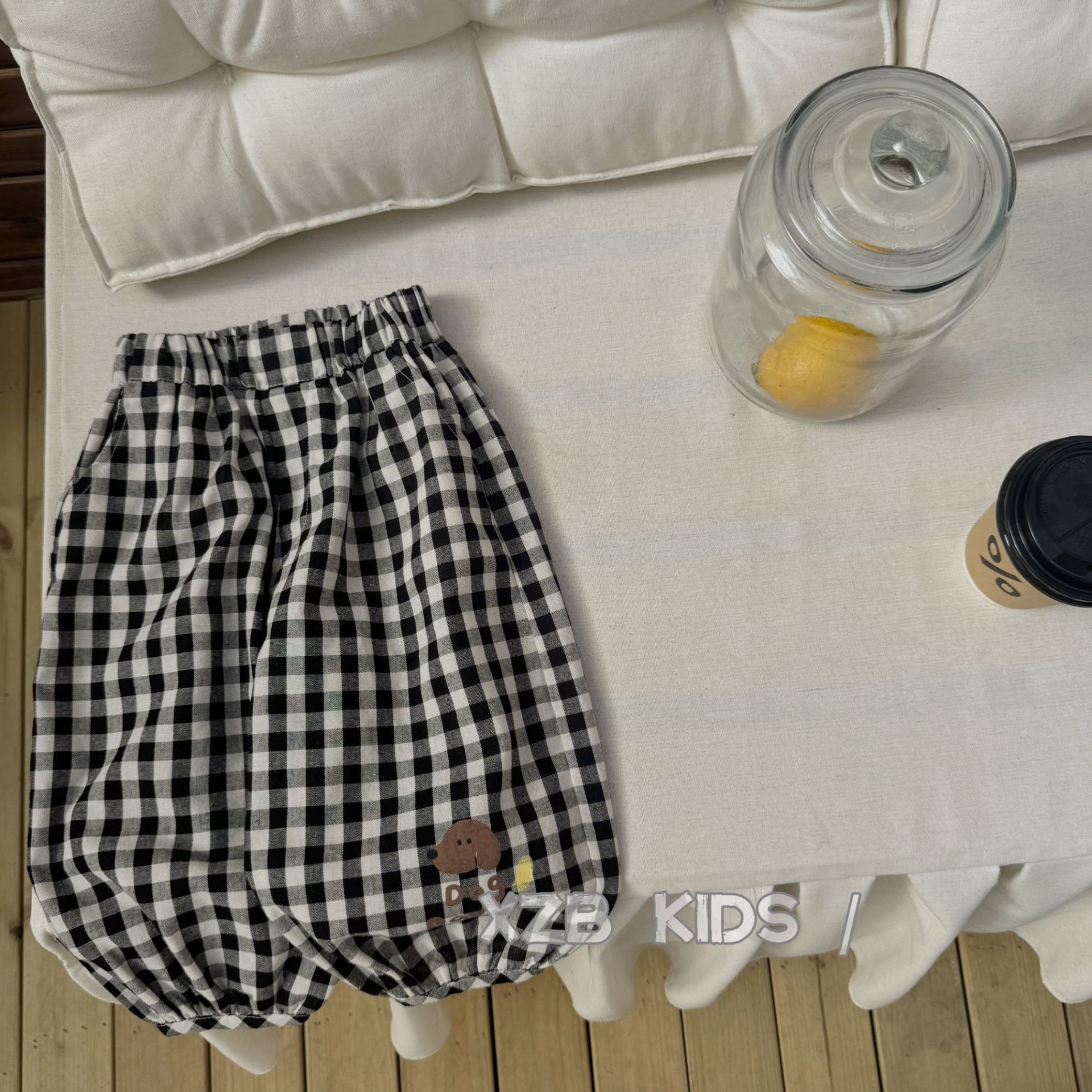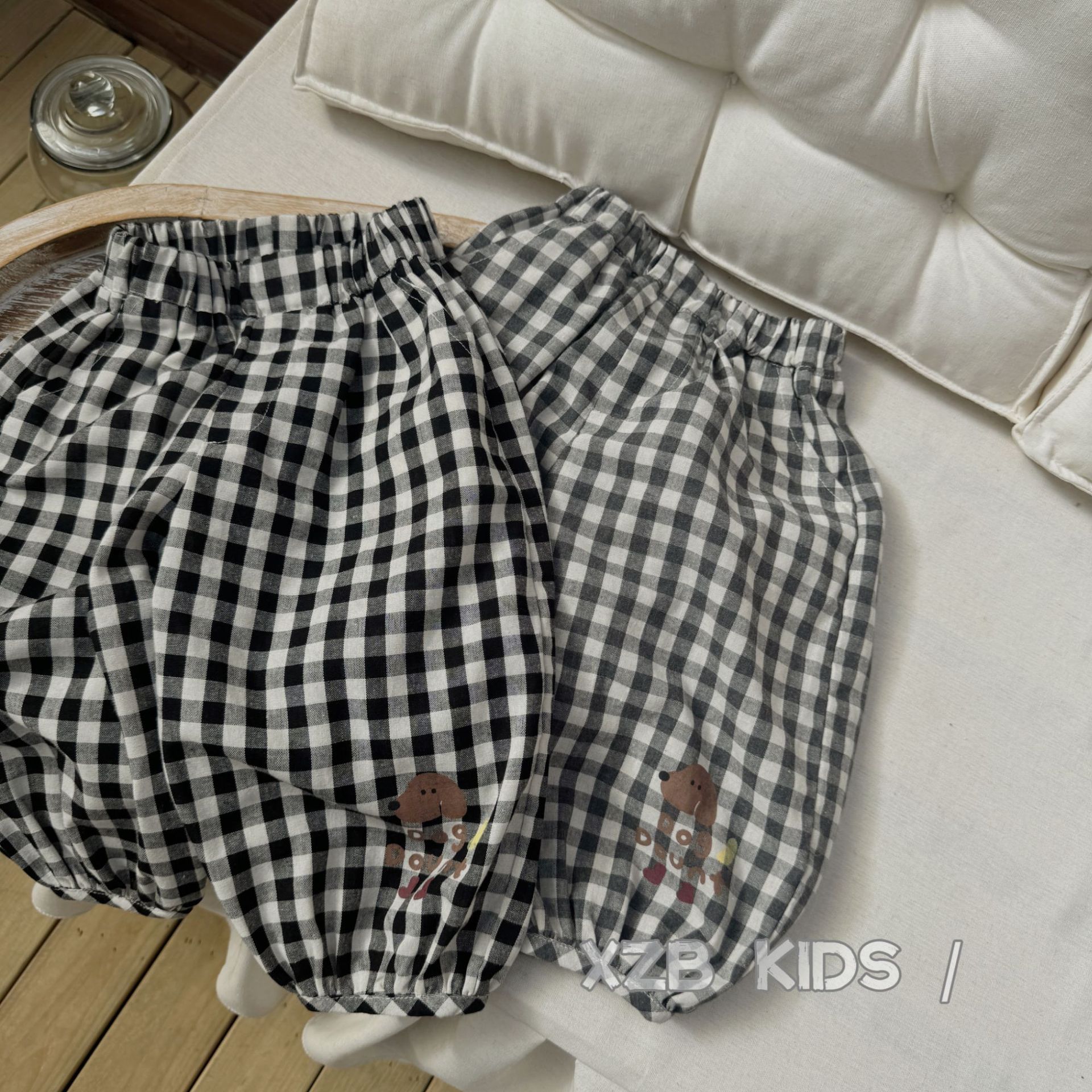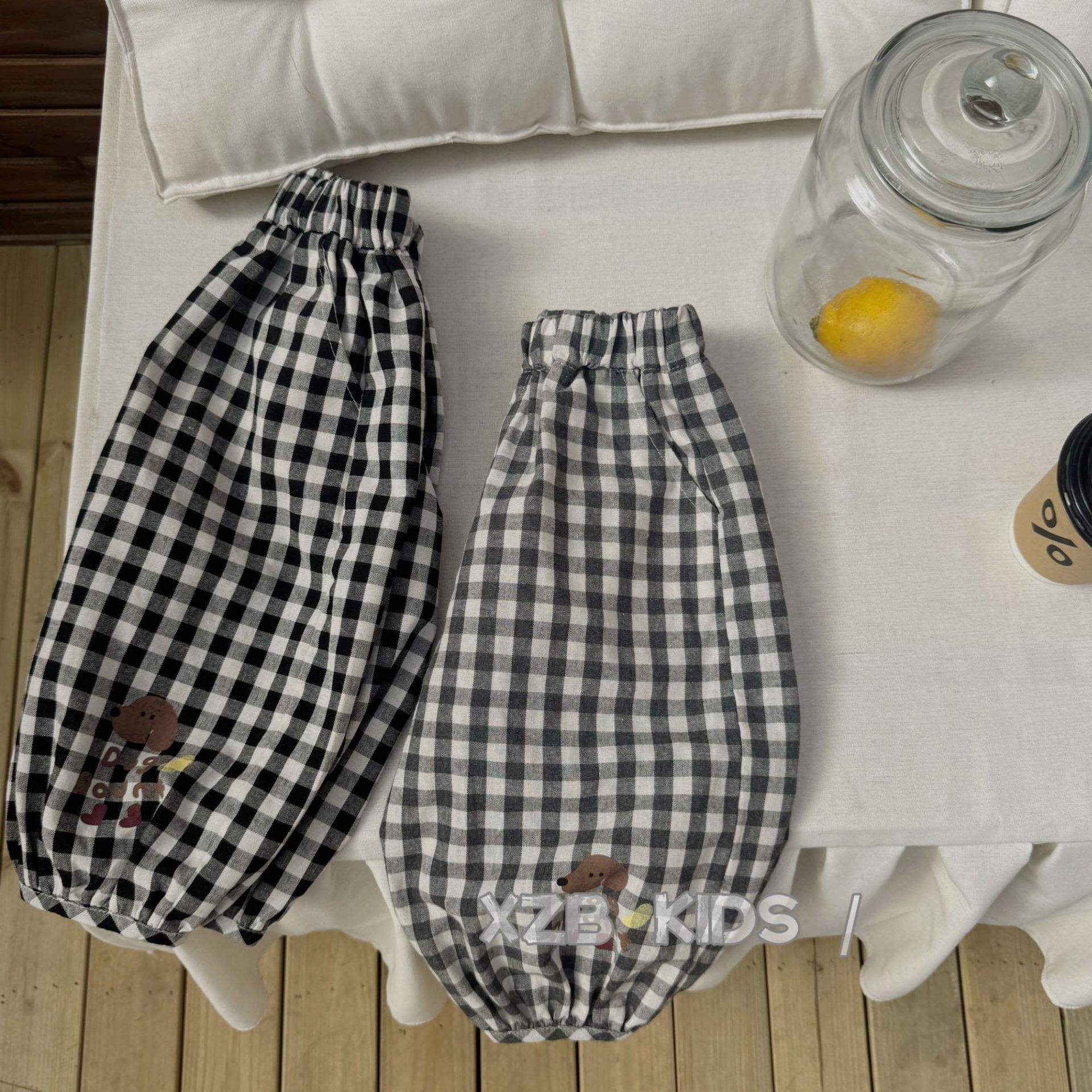 2025 새로운 어린이 격자 무늬 안티 모기 바지 소년 소녀를위한 얇은 여름 바지 한국 유행 아기 블루머스토어 가기