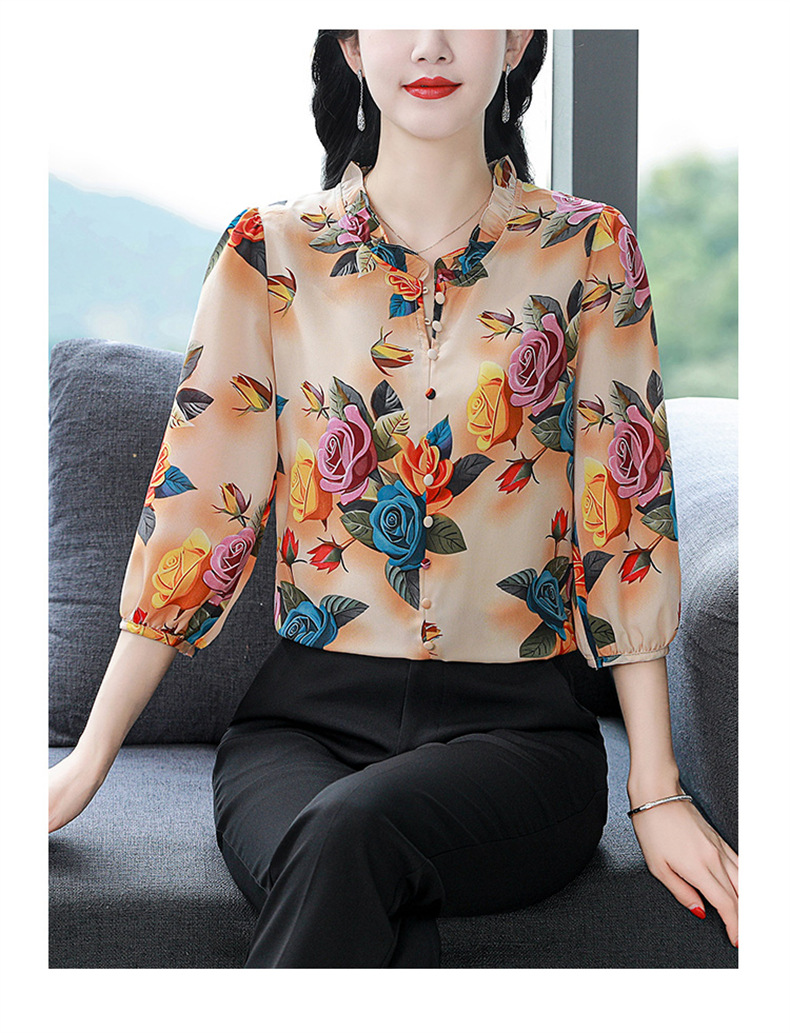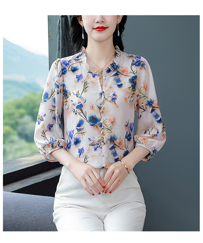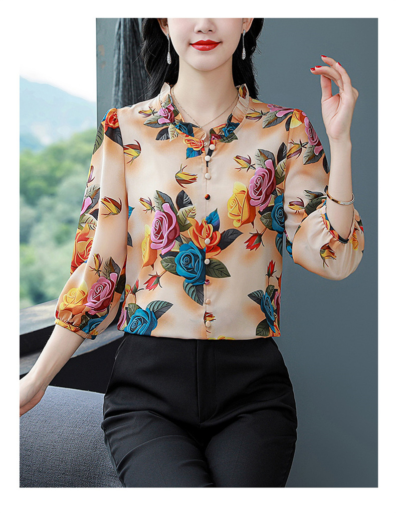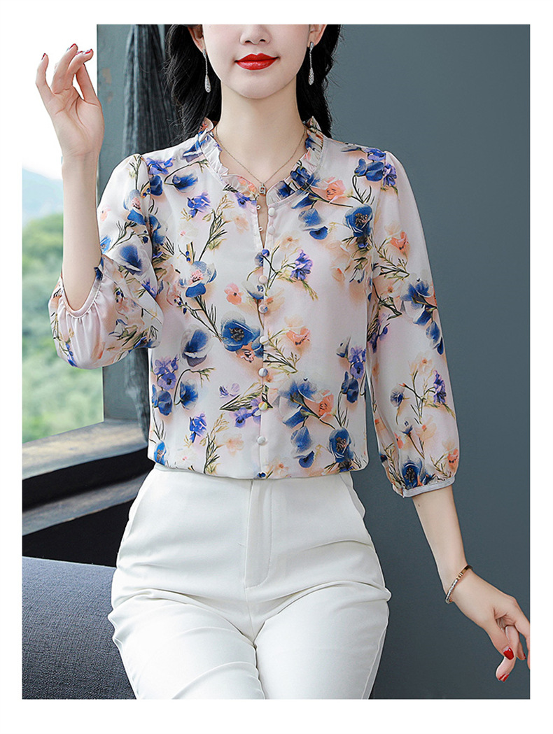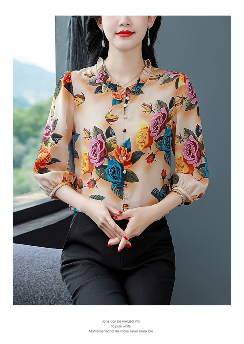실제 촬영된 쉬폰 셔츠, 새로운 복고풍 홍콩 스타일의 여성용 멀버리 실크 탑, 다용도 셔츠, 루즈하고 배를 덮습니다.스토어 가기