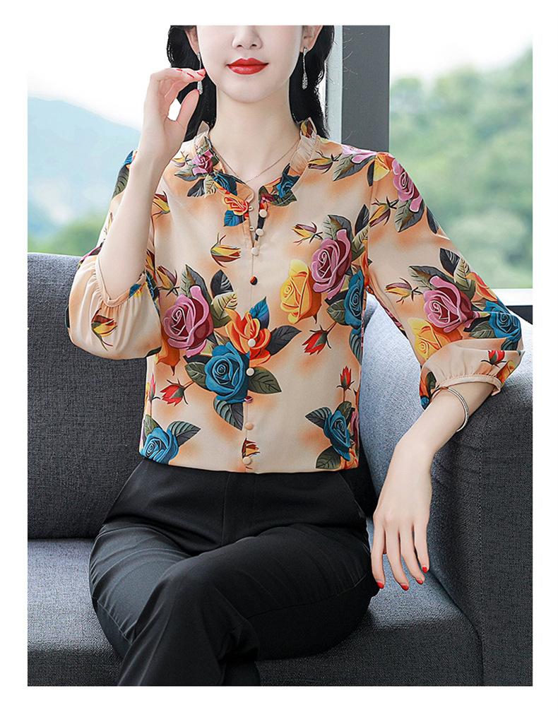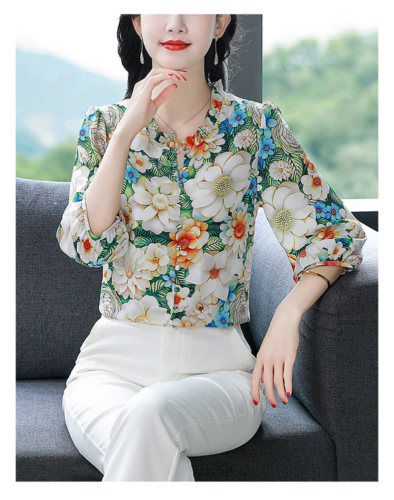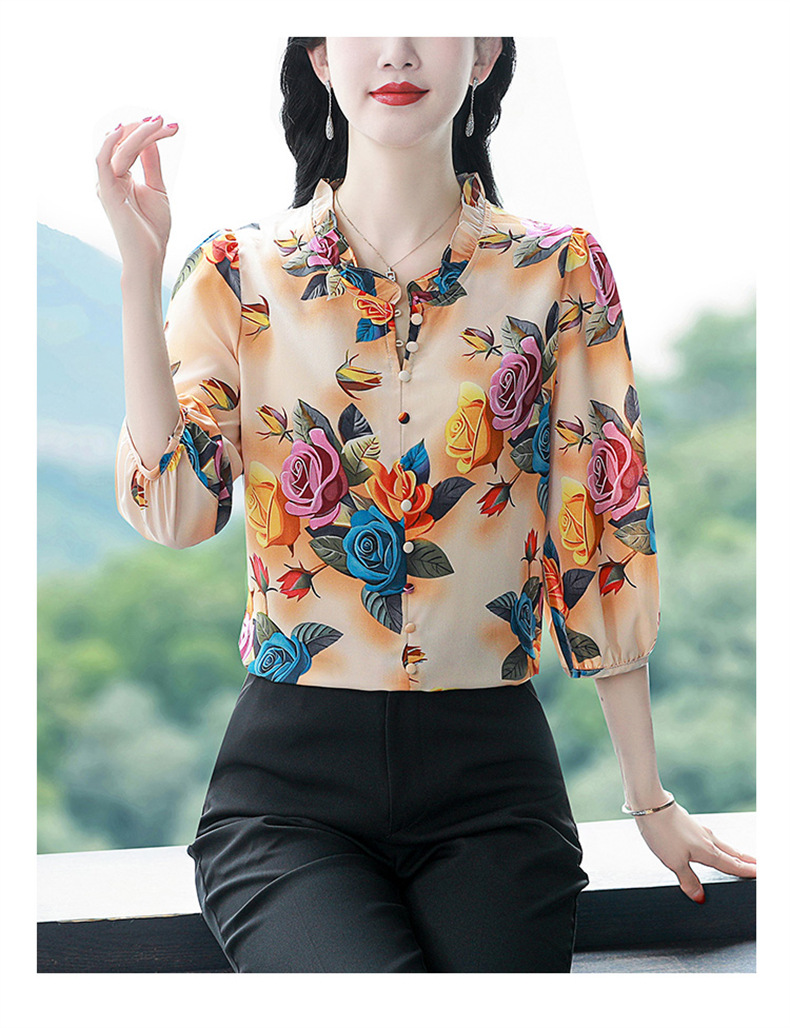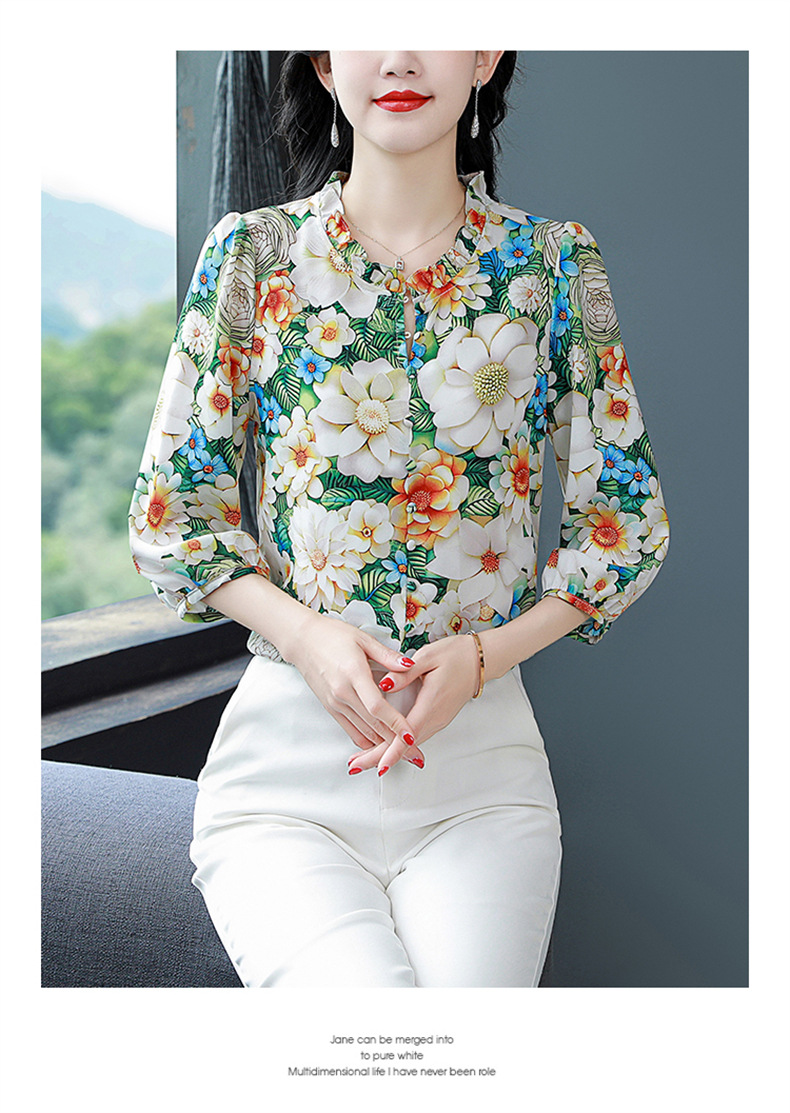 실제 촬영된 쉬폰 셔츠, 새로운 복고풍 홍콩 스타일의 여성용 멀버리 실크 탑, 다용도 셔츠, 루즈하고 배를 덮습니다.스토어 가기