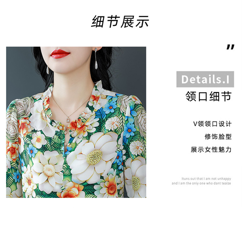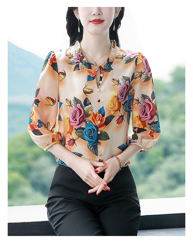 실제 촬영된 쉬폰 셔츠, 새로운 복고풍 홍콩 스타일의 여성용 멀버리 실크 탑, 다용도 셔츠, 루즈하고 배를 덮습니다.