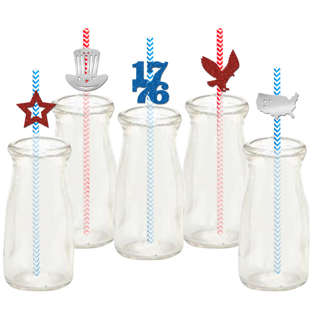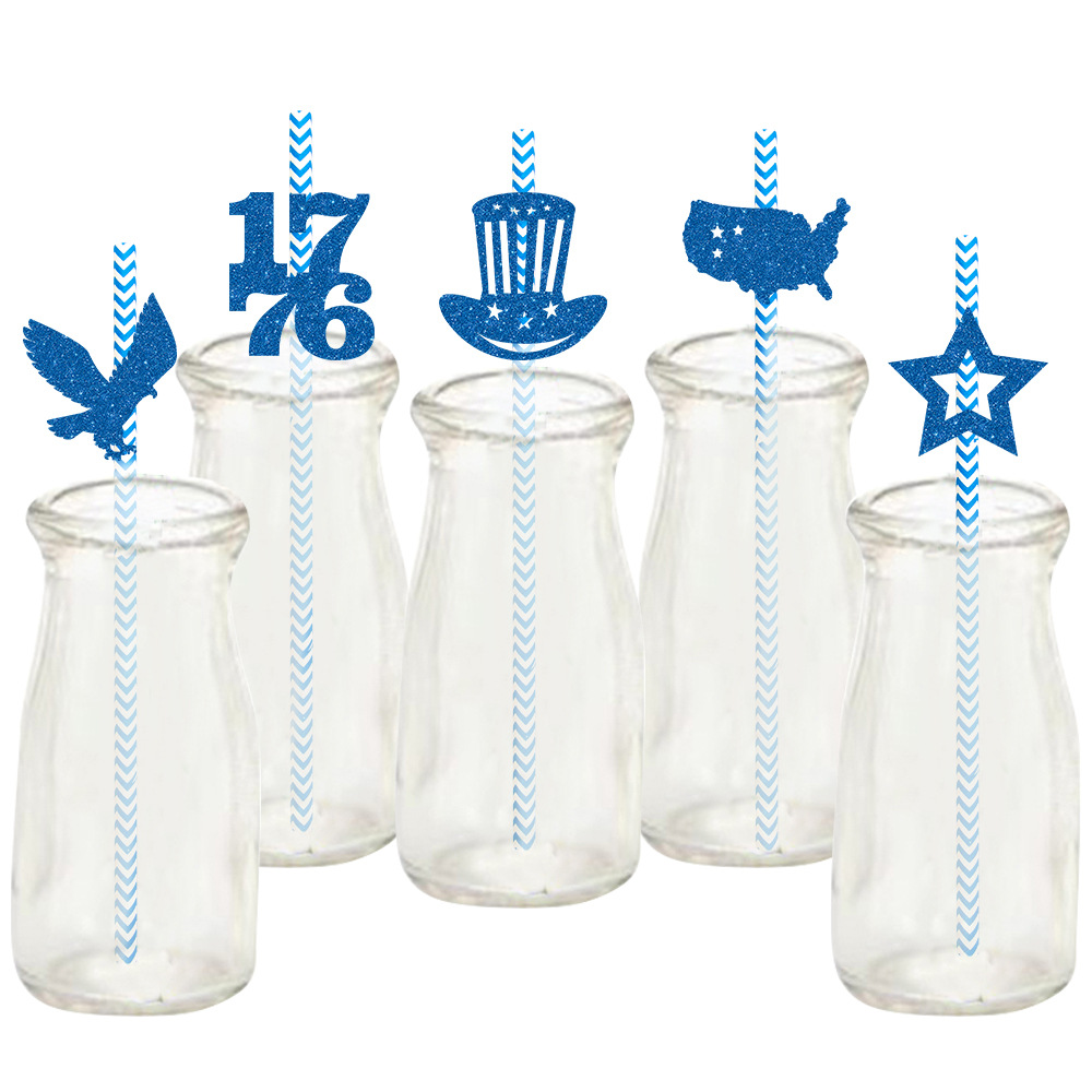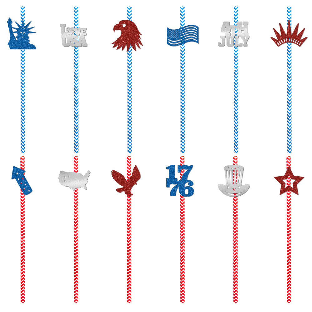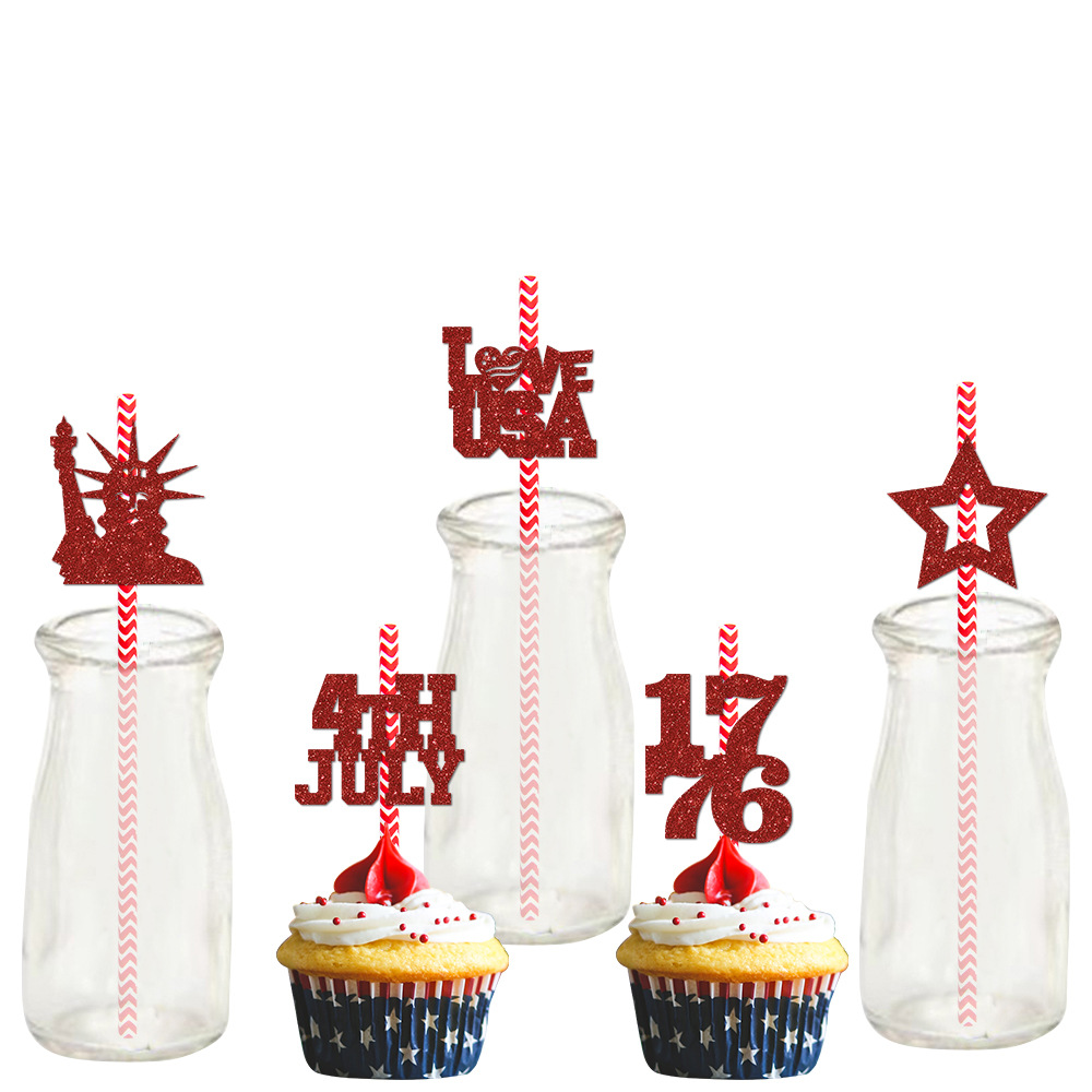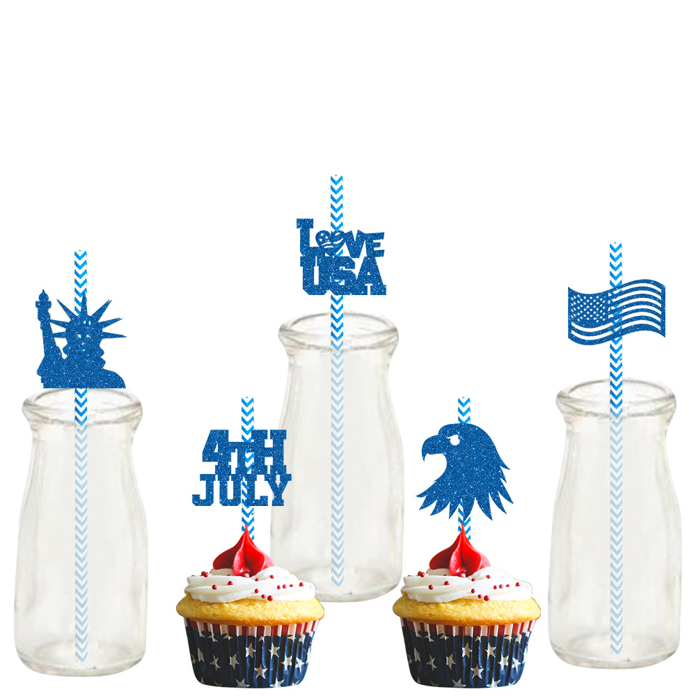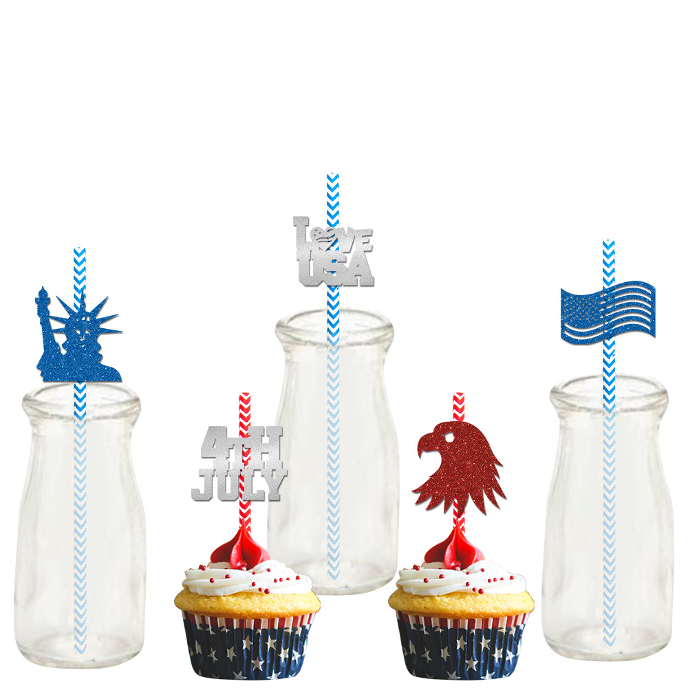 국경 간 새로운 미국 독립 기념일 장식 일회용 종이 밀짚 플러그인 장면 소품 파티 용품