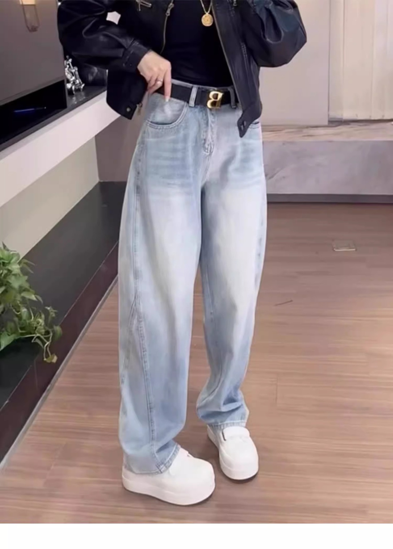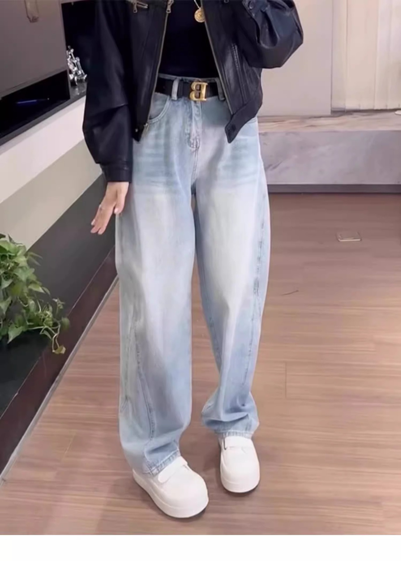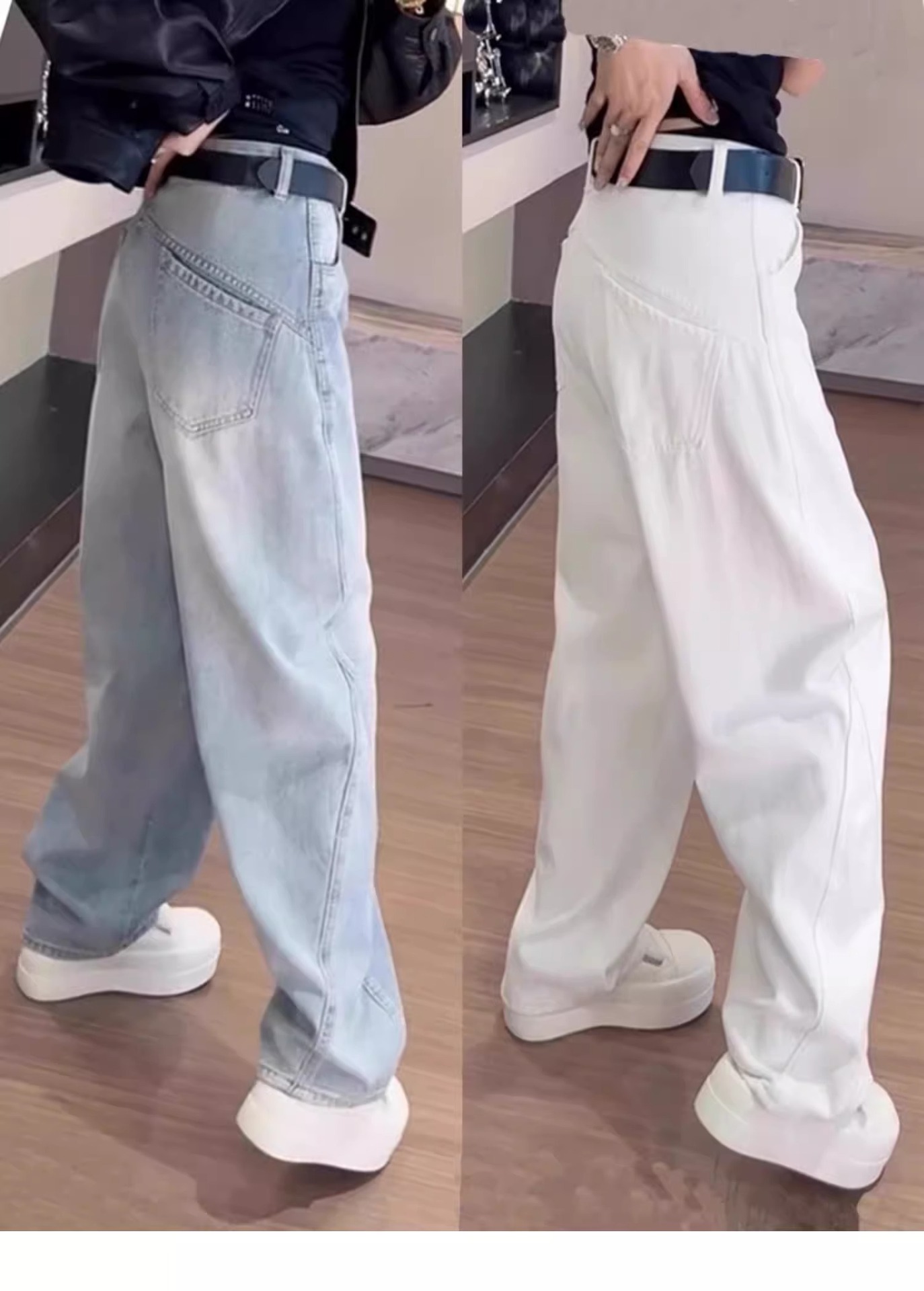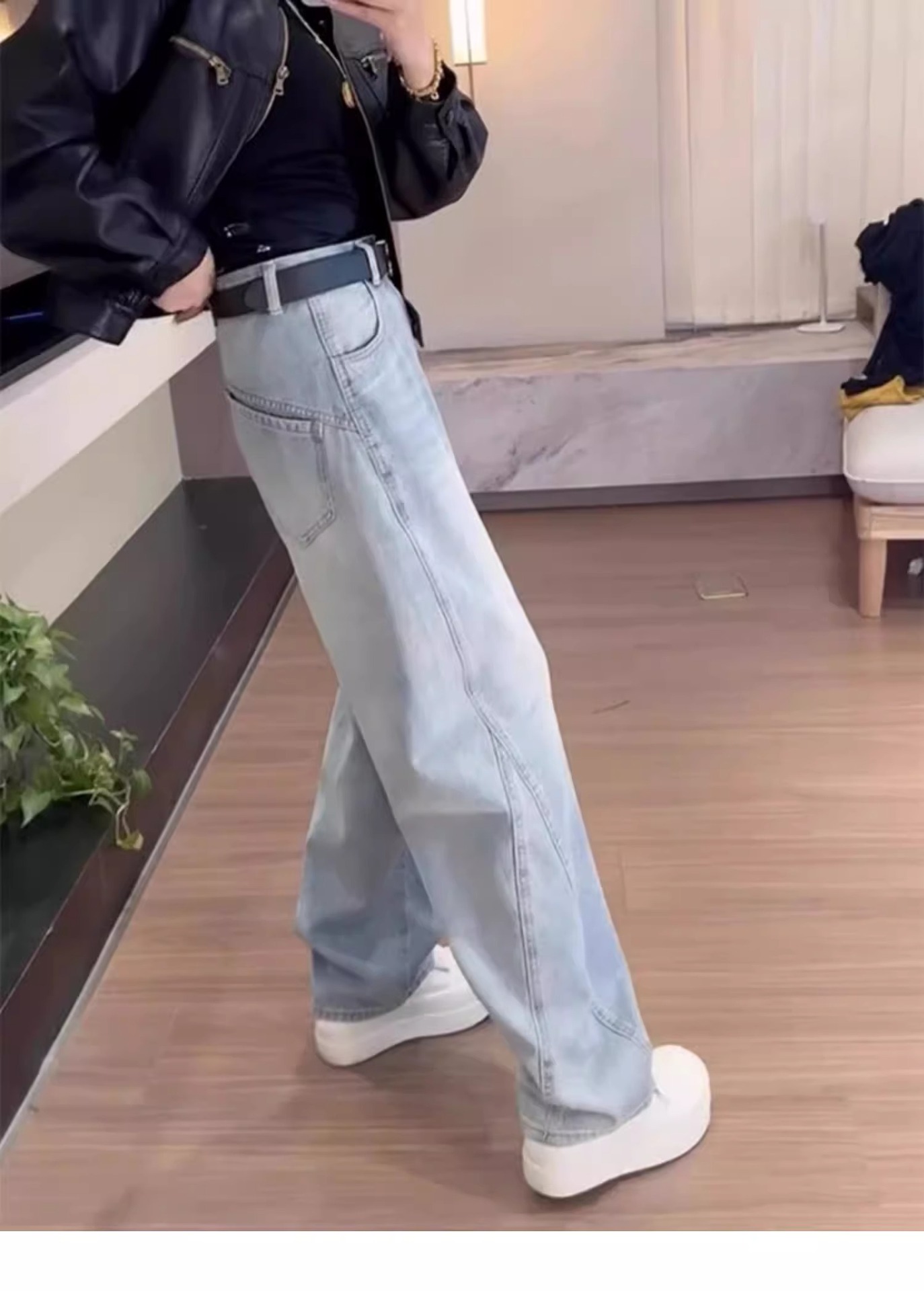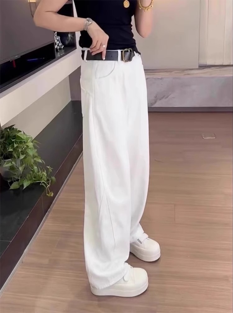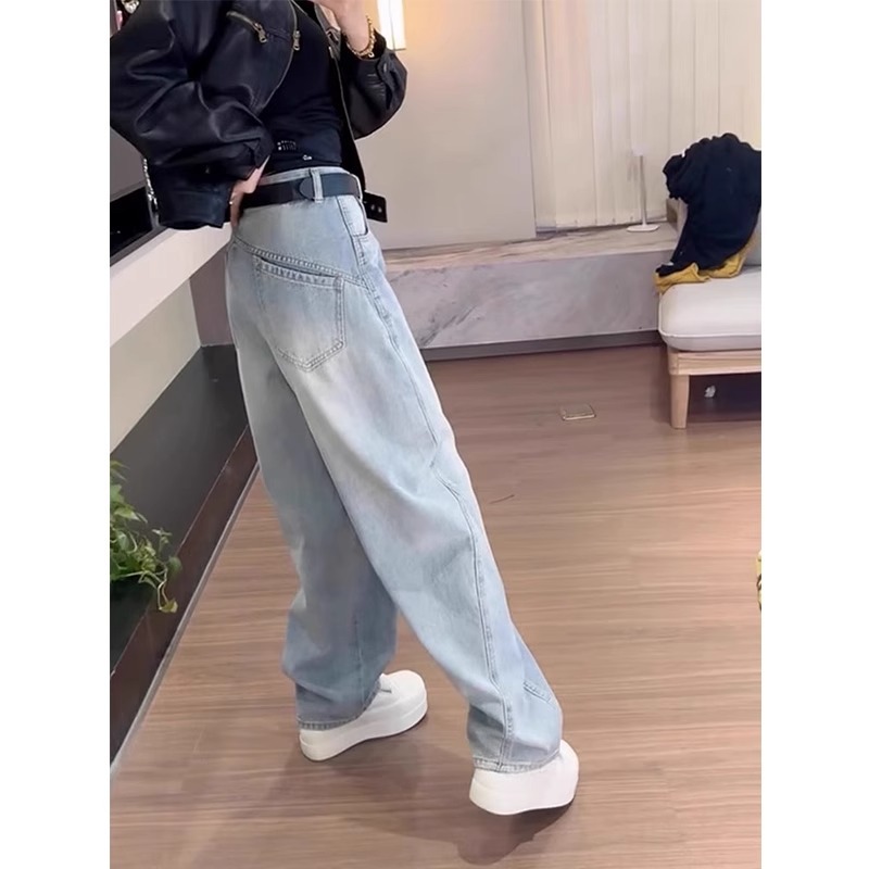 여성용 플러스 사이즈 레트로 채플린 청바지 봄, 가을 뚱뚱한 mm 배꼽 모양의 몸 루즈한 하이 웨이스트 슬리밍 스트레이트 와이드 레그 팬츠스토어 가기