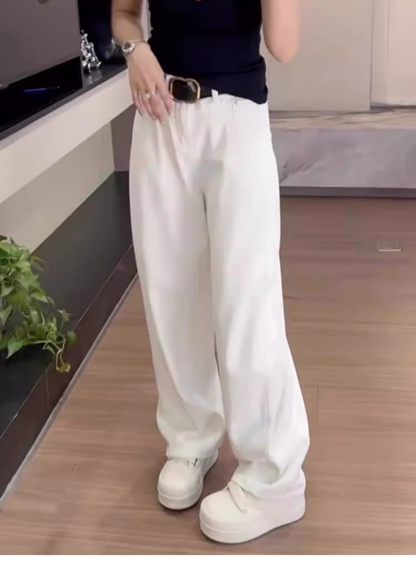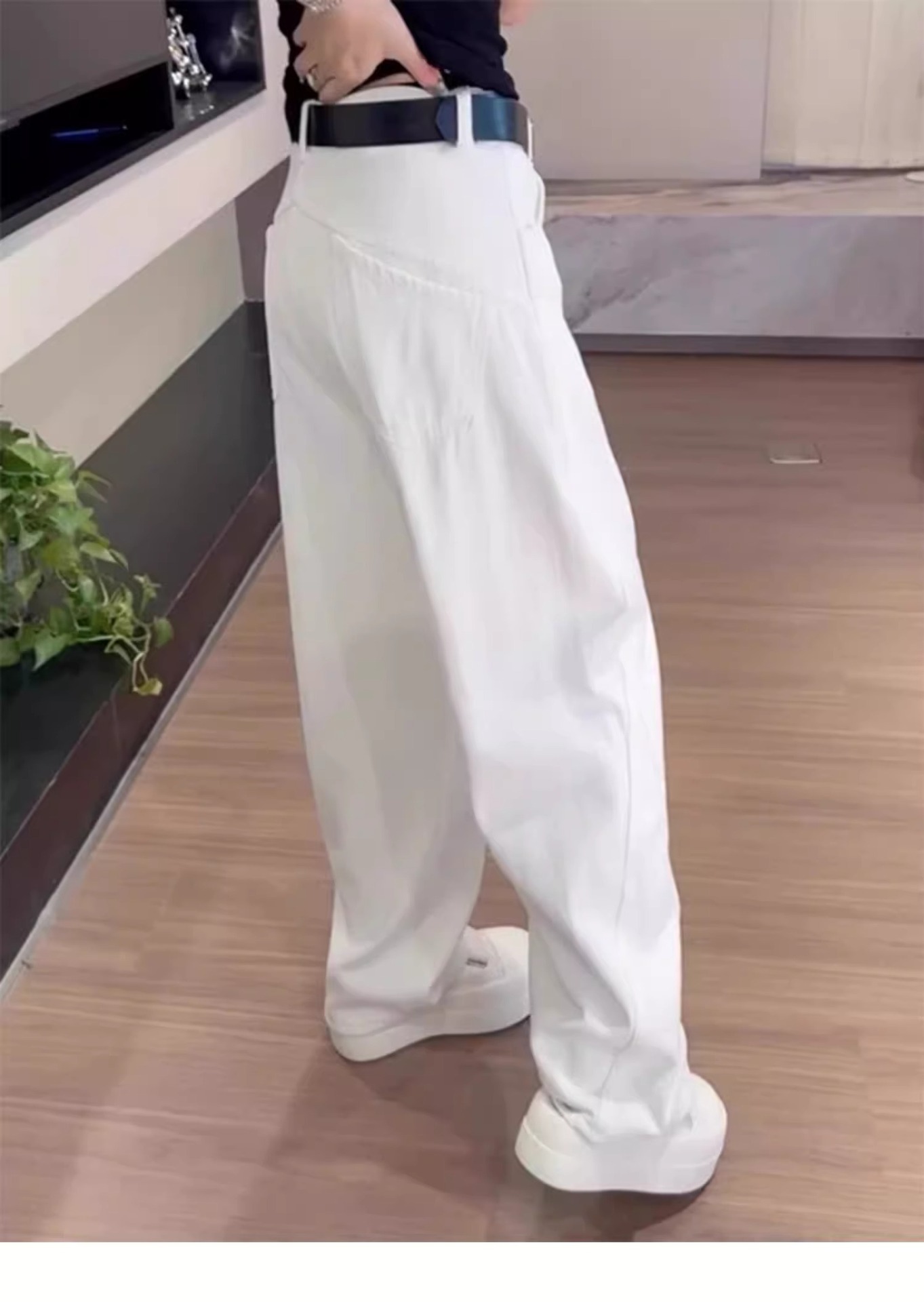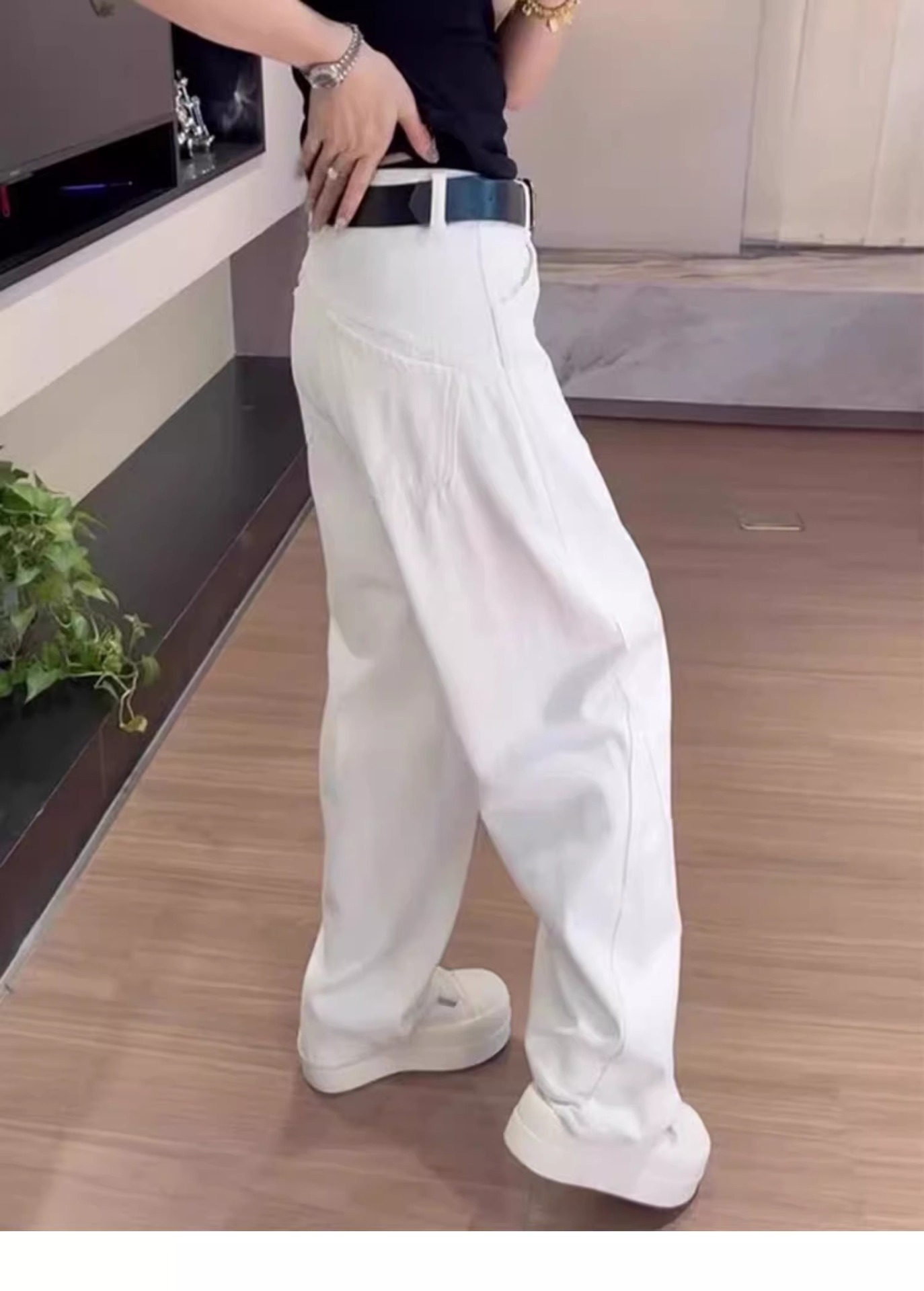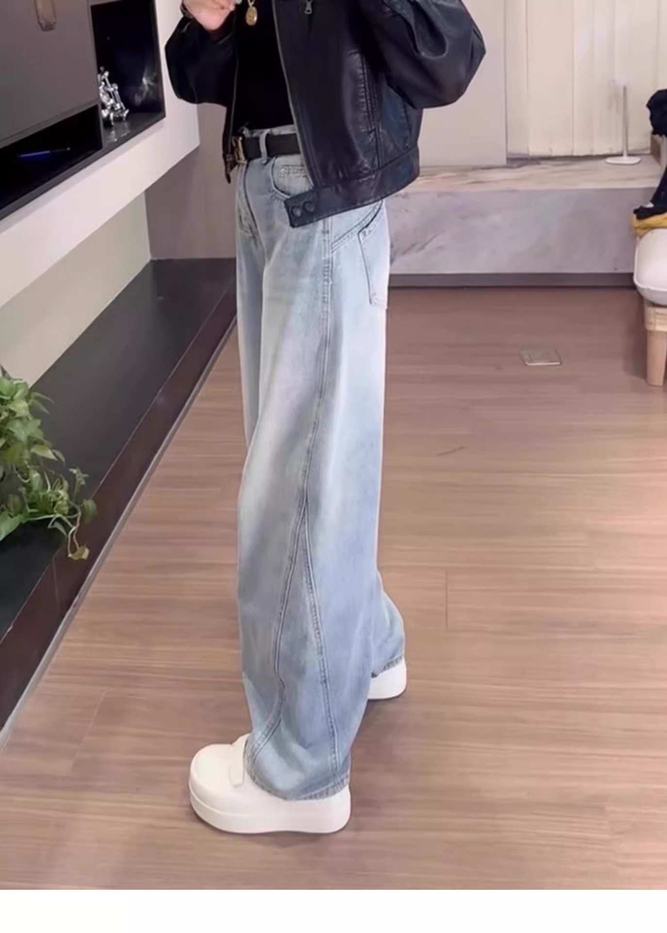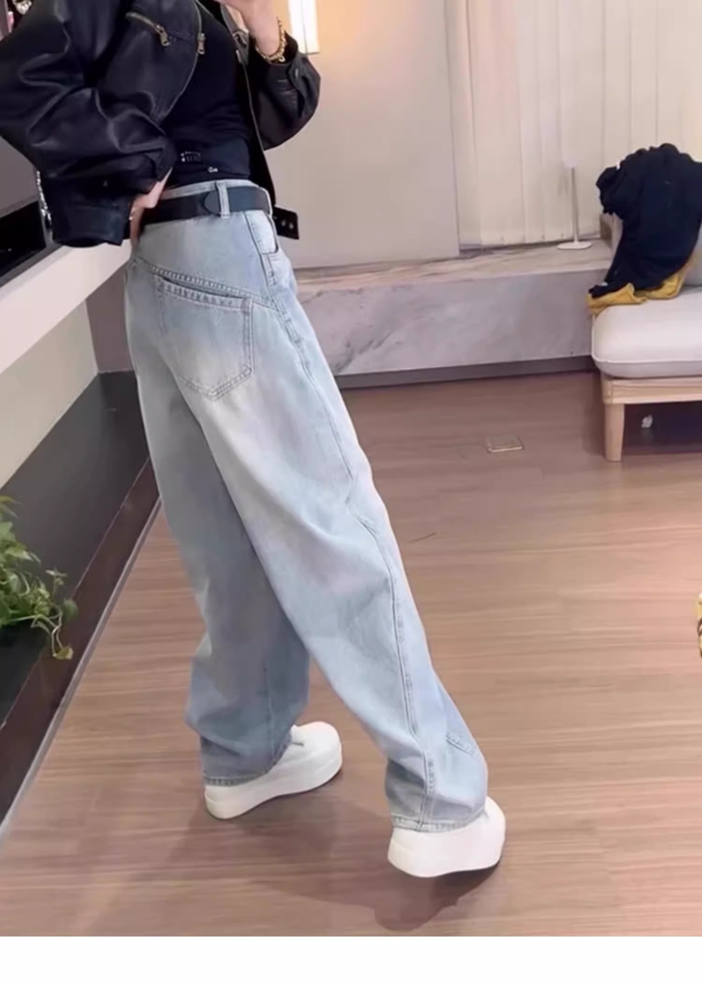 여성용 플러스 사이즈 레트로 채플린 청바지 봄, 가을 뚱뚱한 mm 배꼽 모양의 몸 루즈한 하이 웨이스트 슬리밍 스트레이트 와이드 레그 팬츠스토어 가기