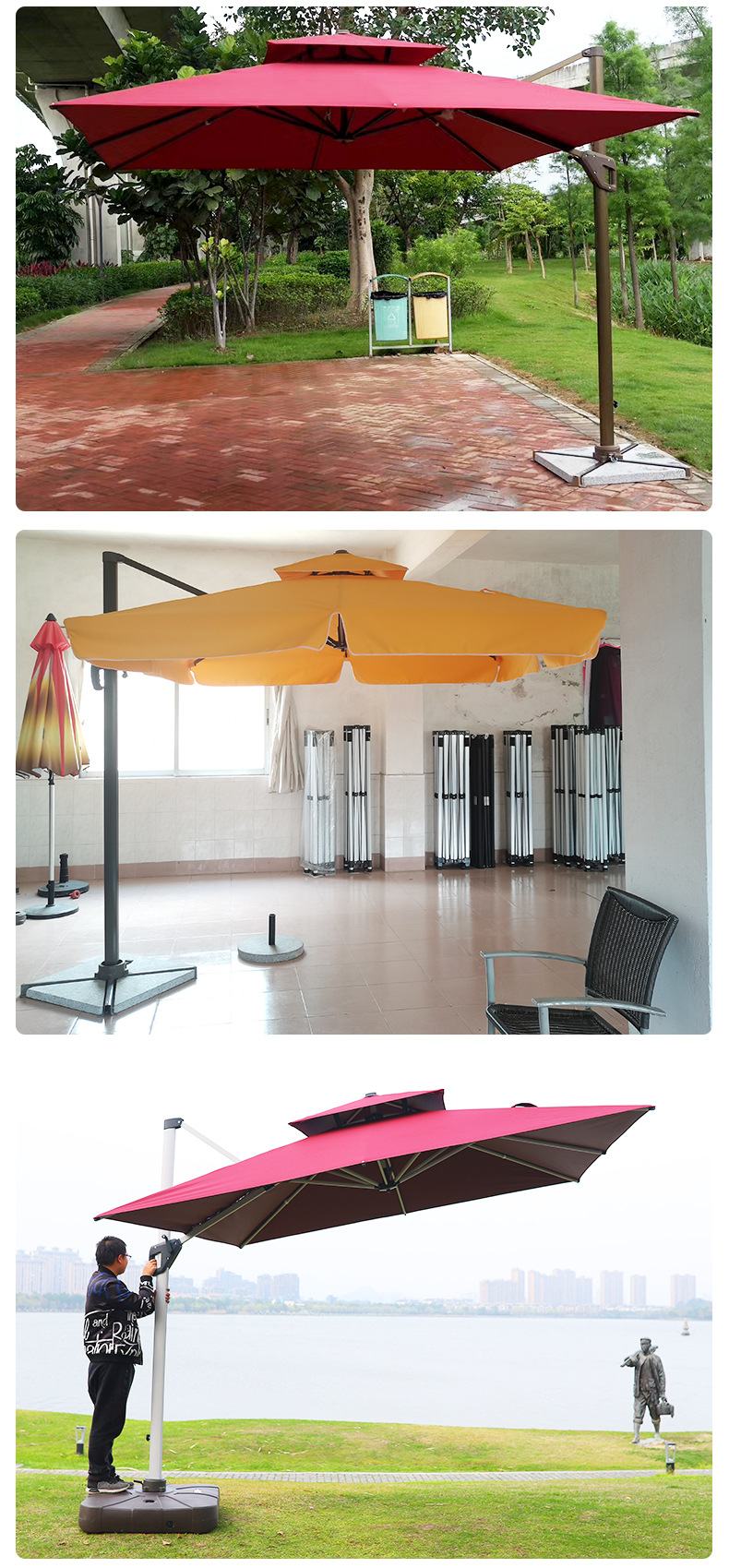 태양 우산 안뜰 파라솔 야외 마구간 해변 활동 3*3 m 로마 우산 파라솔 야외 대형 우산스토어 가기