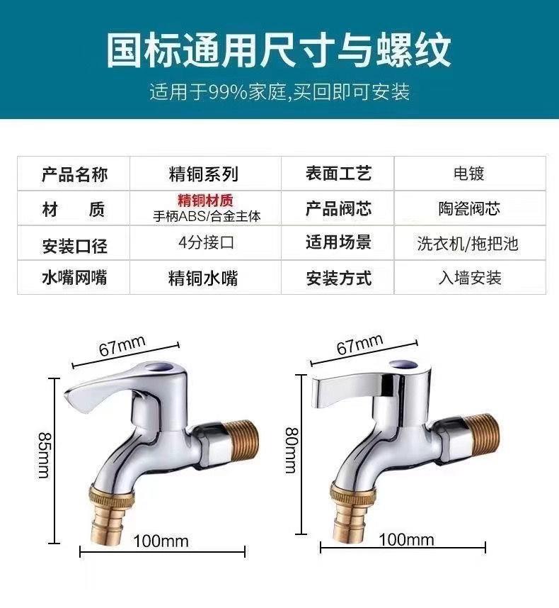 모든 구리 세탁기 수도꼭지 두꺼운 폭발 방지 4 점 단일 냉각 범용 스테인레스 스틸 세탁기 걸레 풀 빠른 오프닝