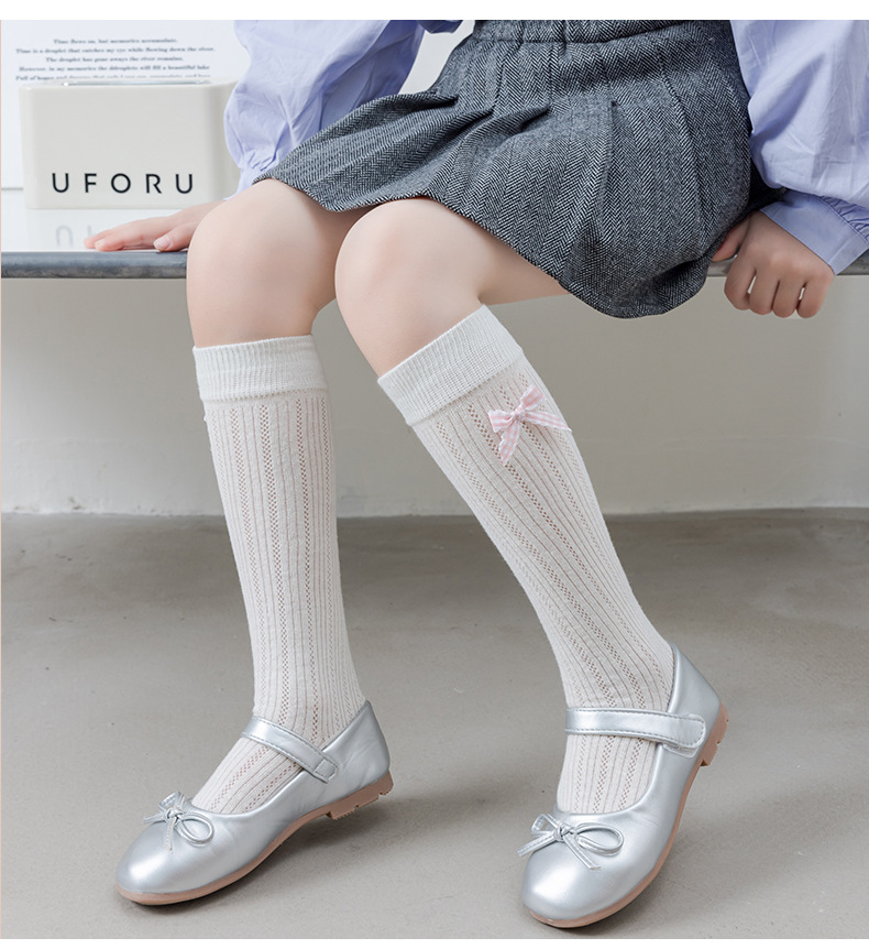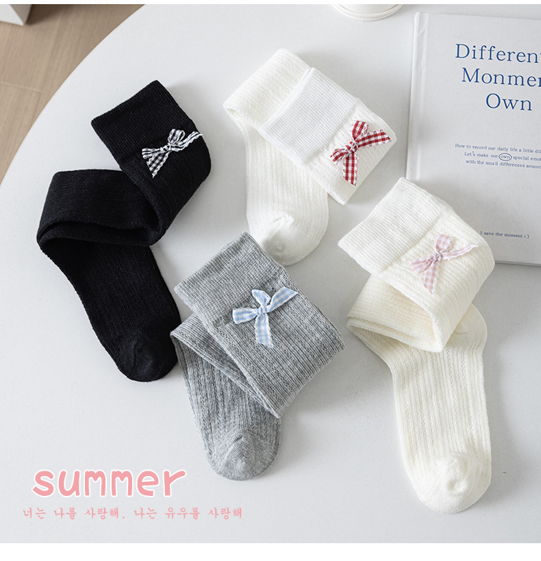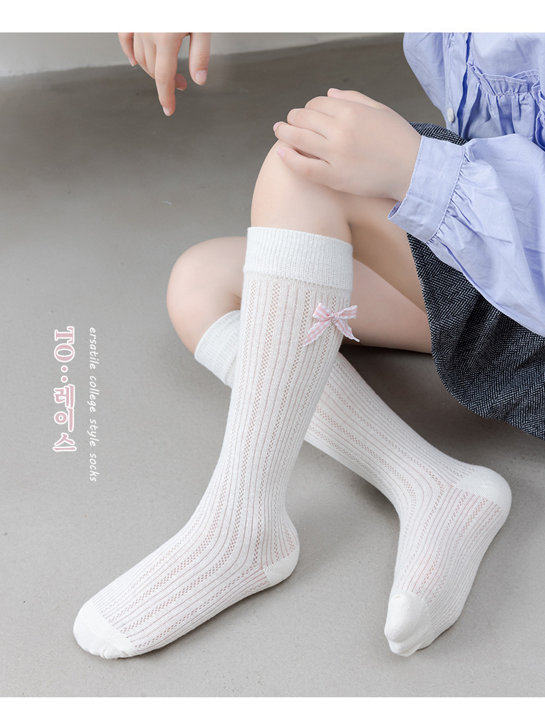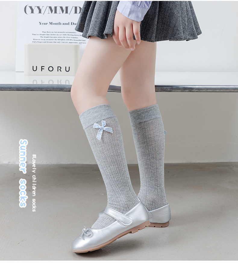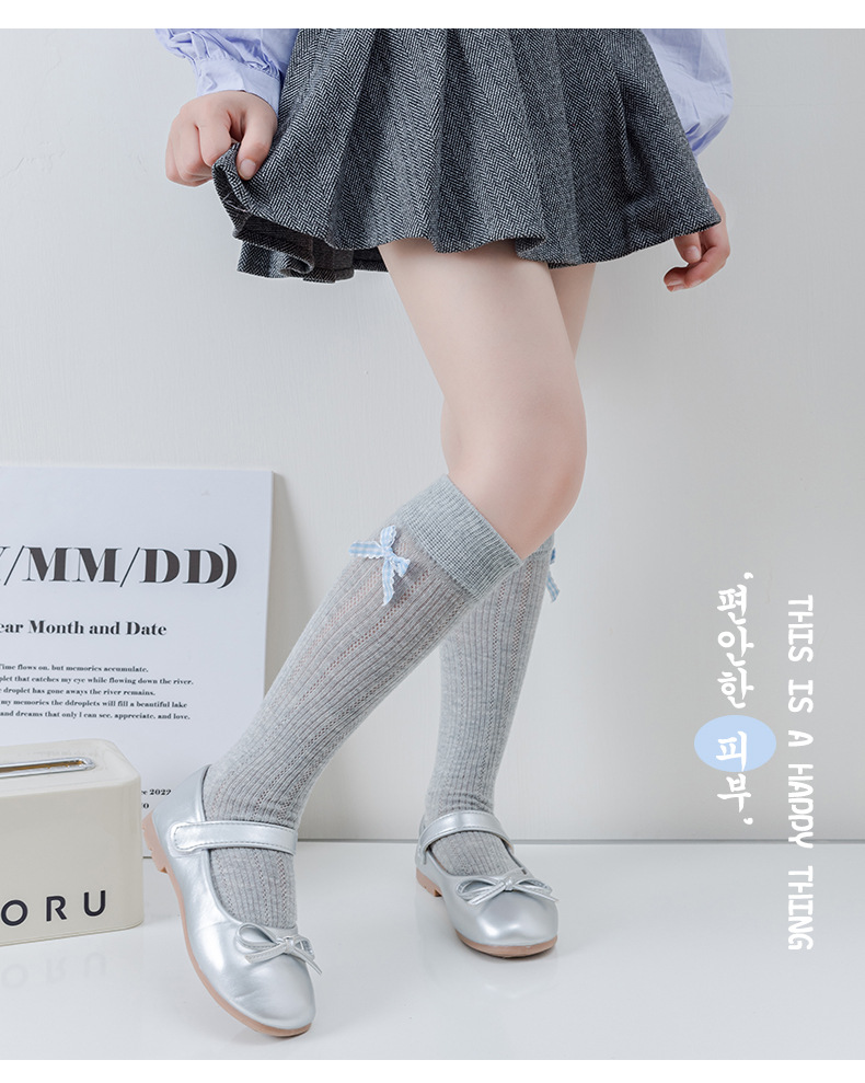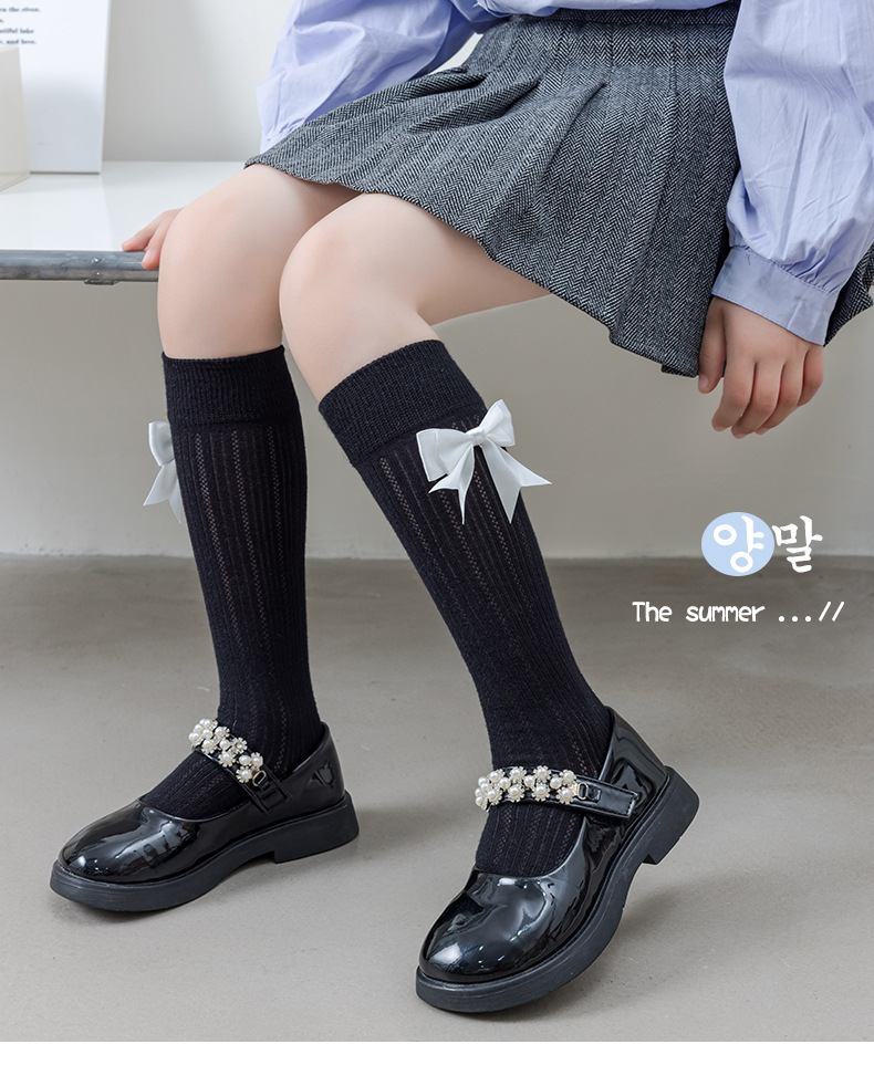 26 여름 스페인 아동용 얇은 메쉬 양말, 여아용 큰 리본 공주 아기 양말스토어 가기