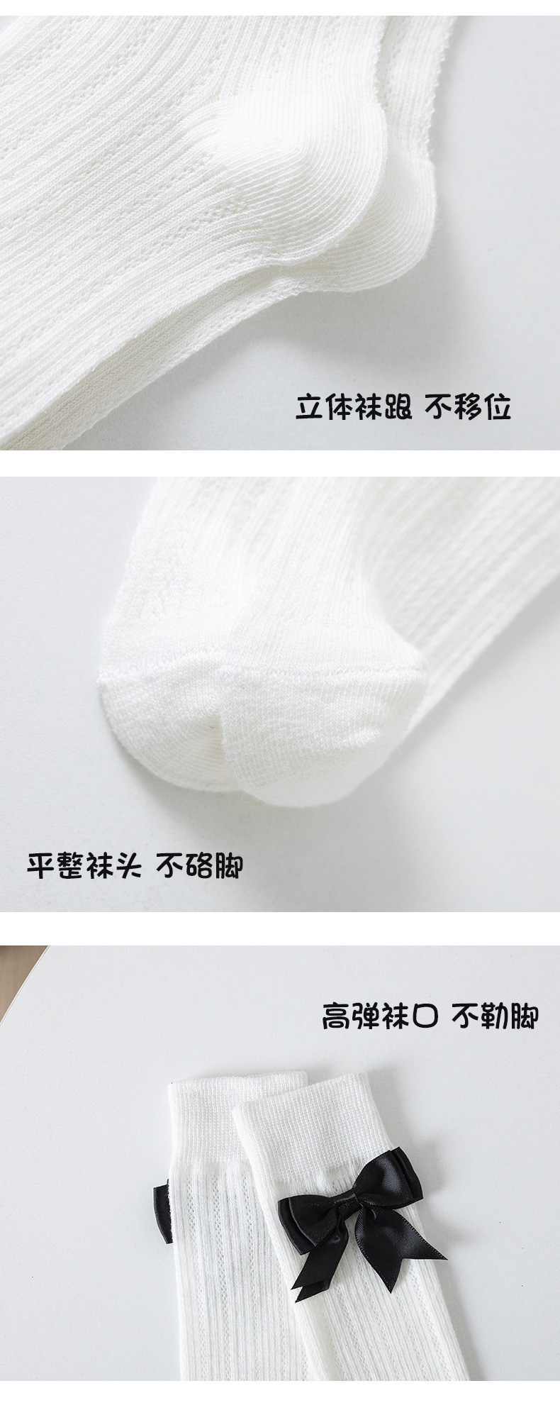 • 큰 검은색 리본이 달린 흰색 양말