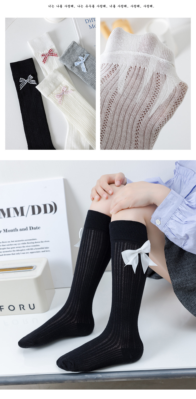 • 검은색 양말과 흰색 리본
