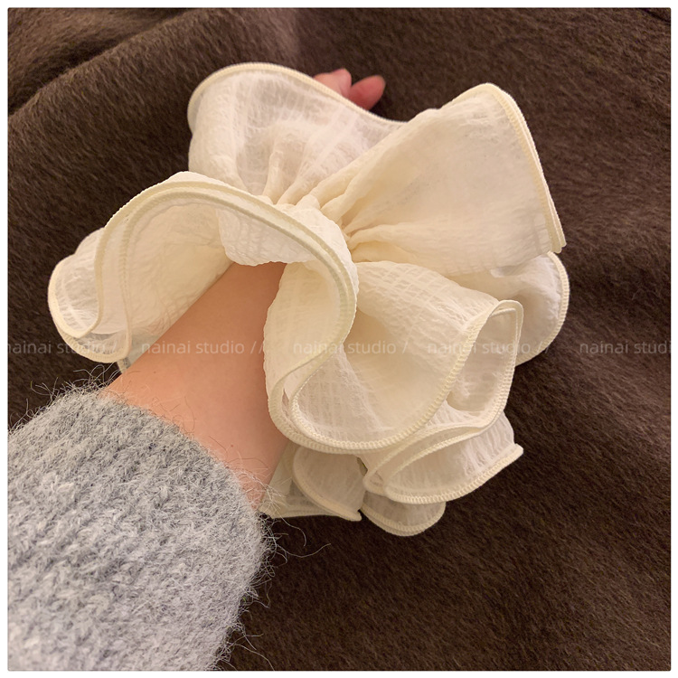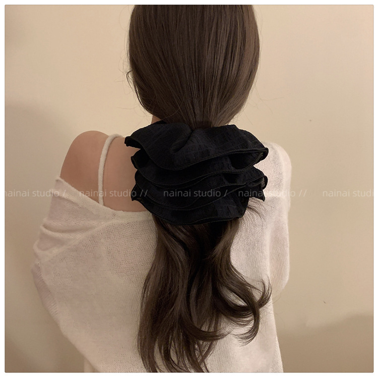 4 층 대형! 블랙 화이트 레이스 주름 고급 대장 헤어 링 프랑스 게으른 한국 스타일 헤어 로프 여성
