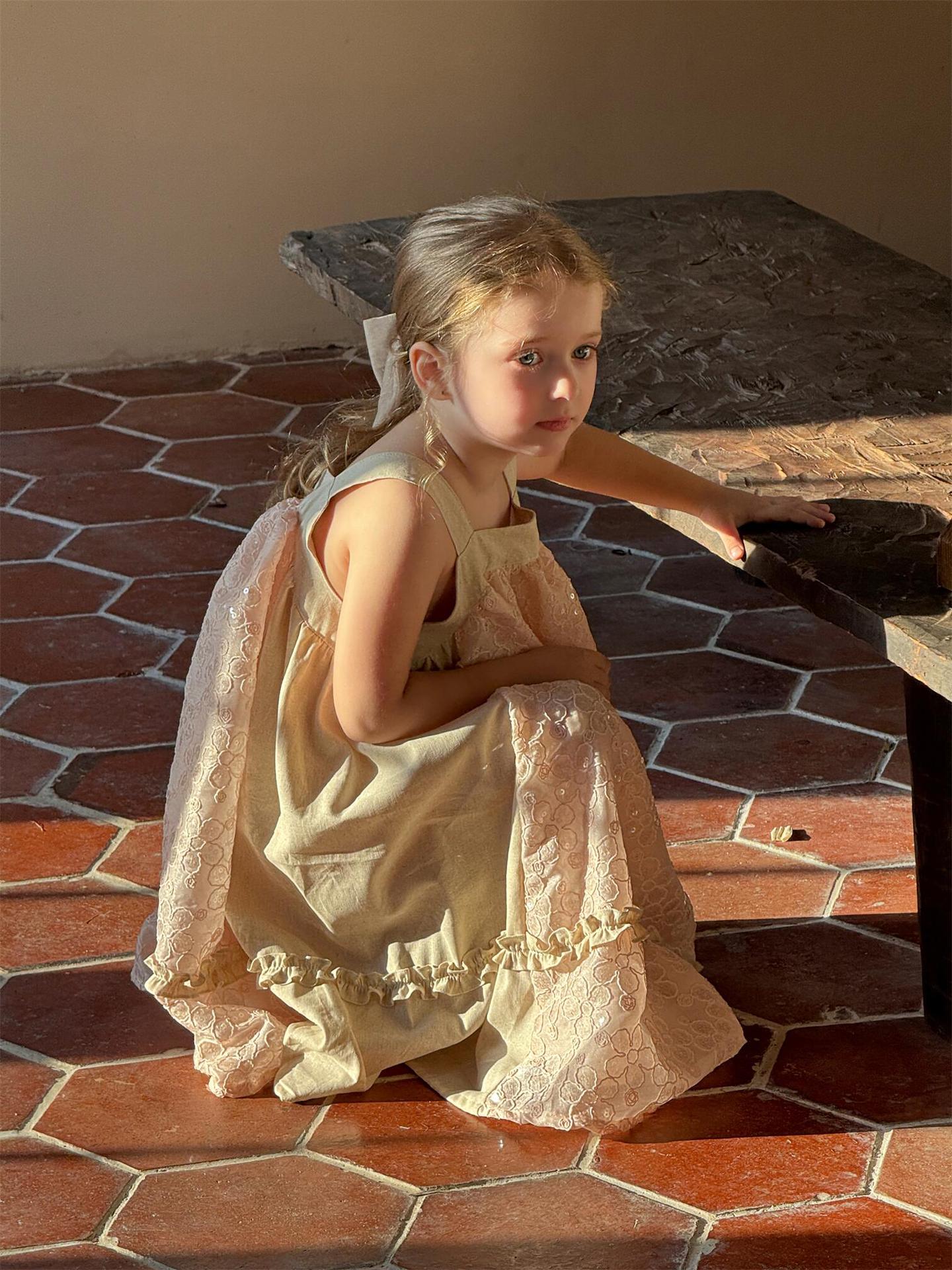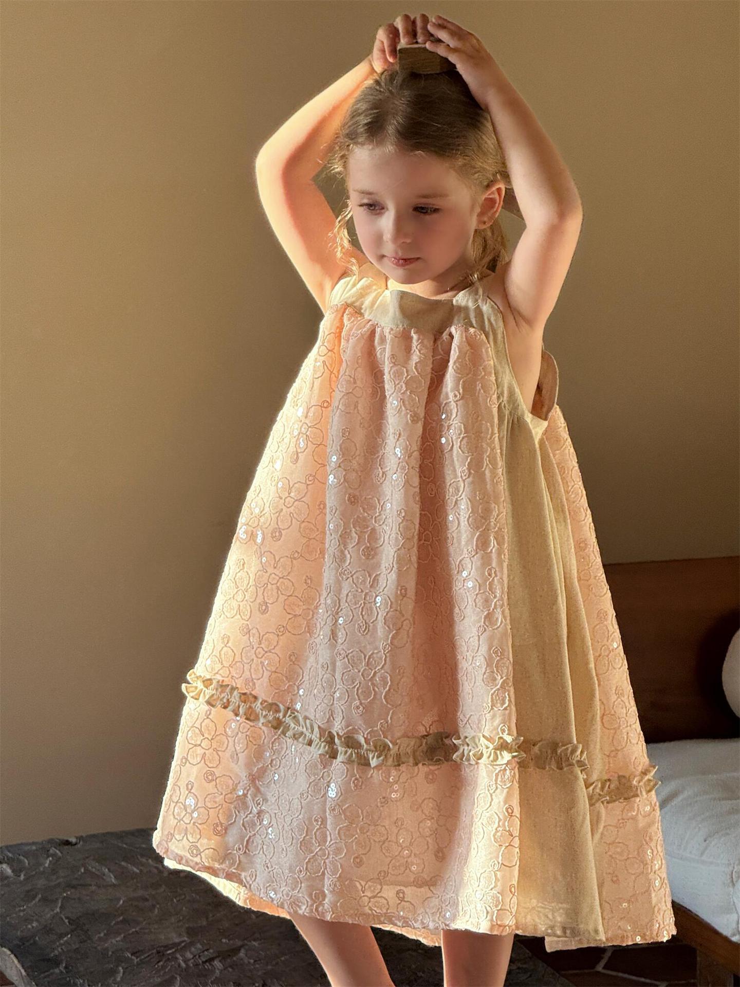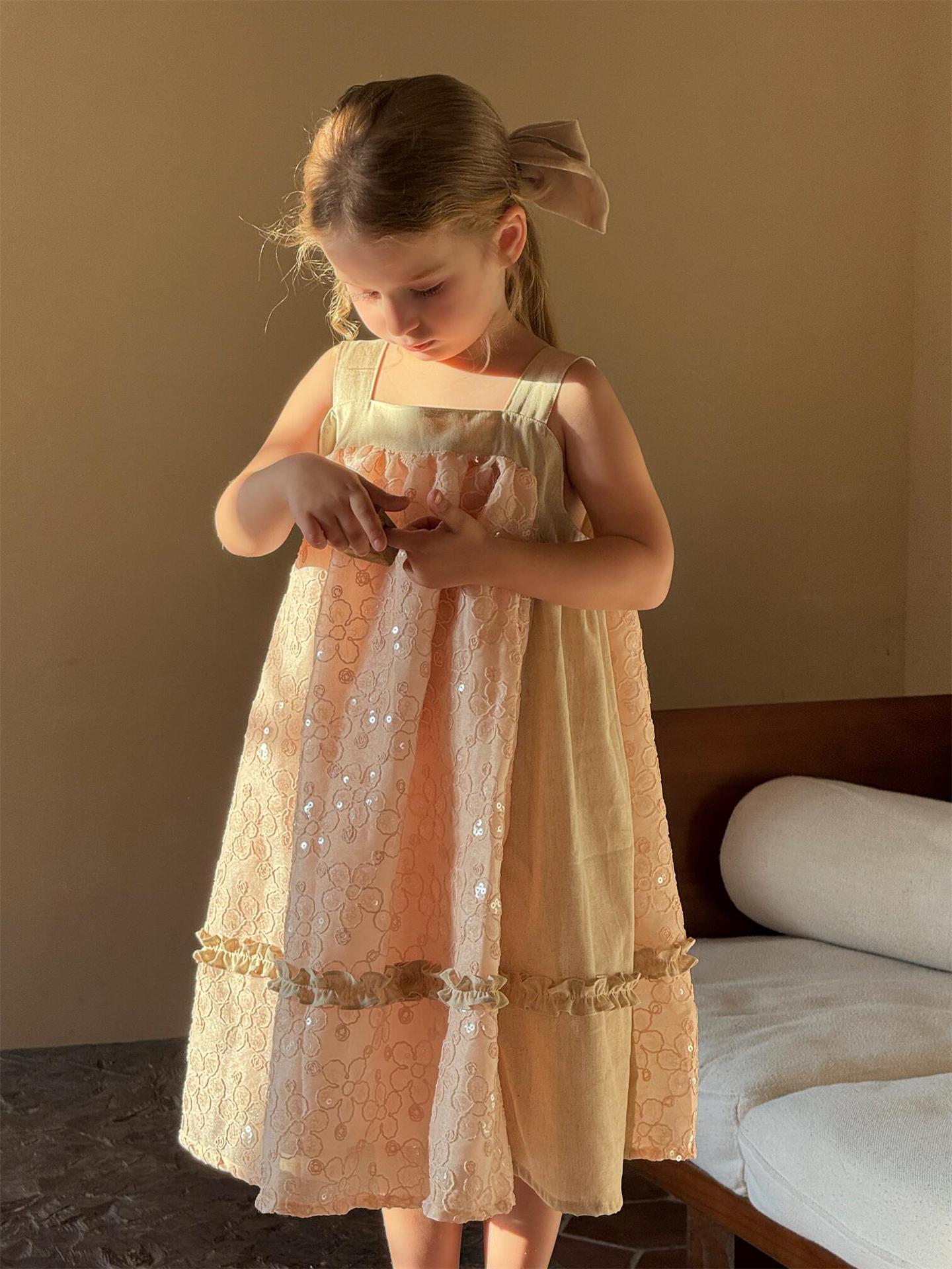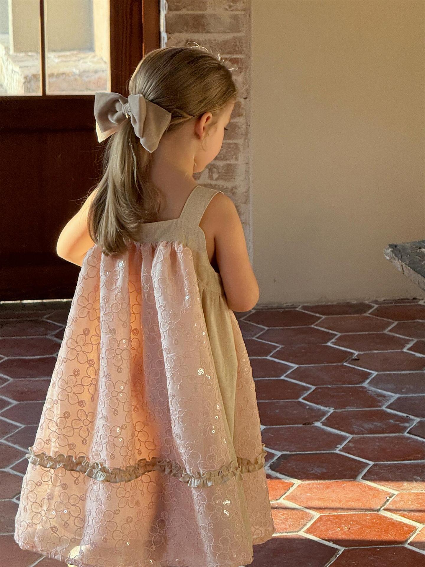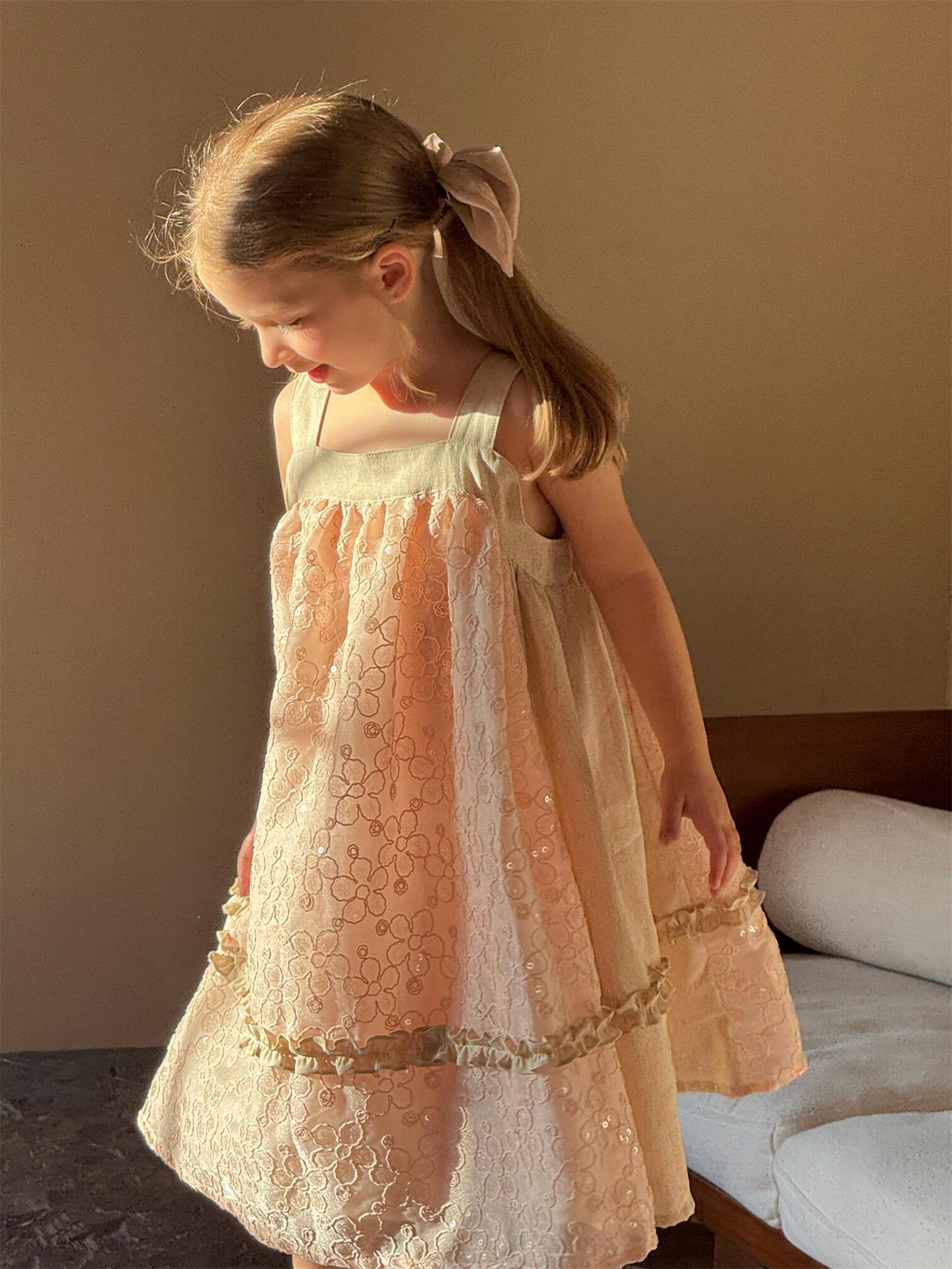 뾰족한 계란 한식 아동복 2025 년 여름 새 여아 스커트 스퀸 자수 원피스 빅 원피스스토어 가기