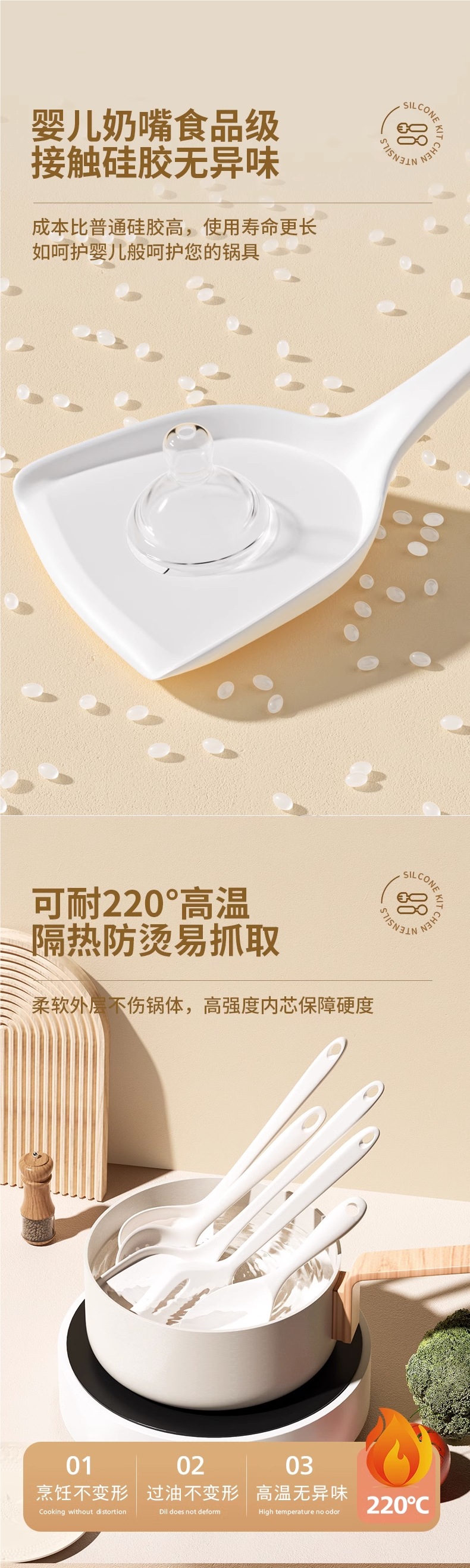 가정용 붙지 않는 냄비 실리콘 고온 조리 스푼 스푼 주걱 식품 등급 주방 용품 세트 스푼