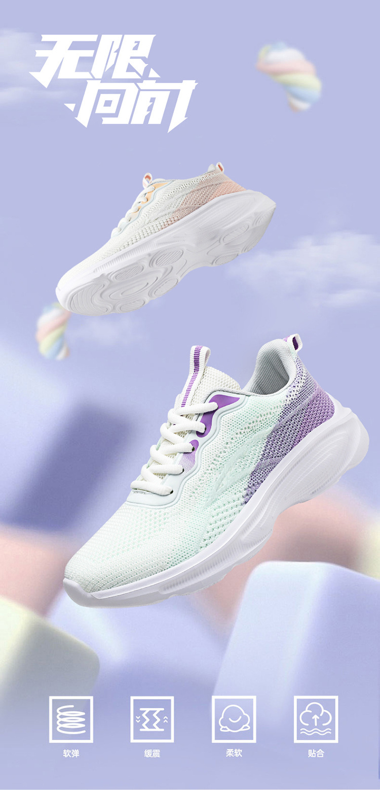 产地:福建晋江,冷粘工艺,飞织面+EVA底,质量三包