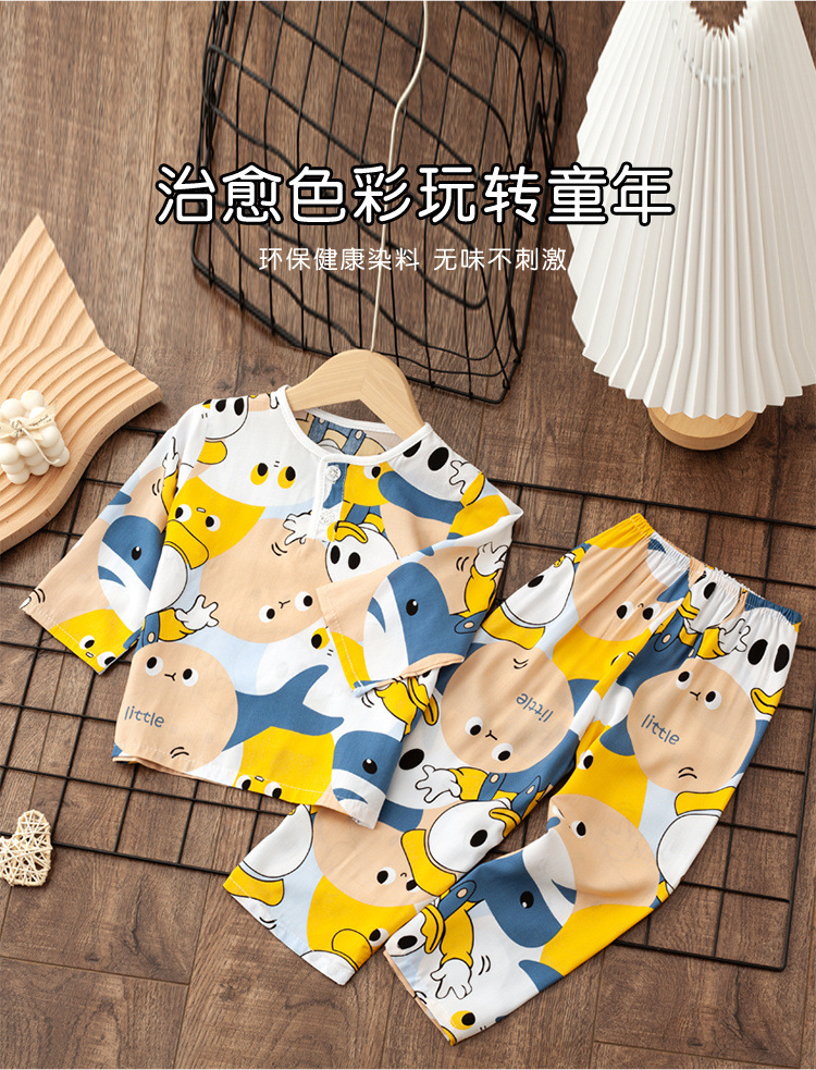 소년 소녀를위한 여름 레이온 어린이 잠옷 중소형 어린이 면 실크 얇은 홈 의류 소년 아기 긴팔 세트스토어 가기