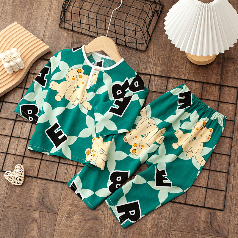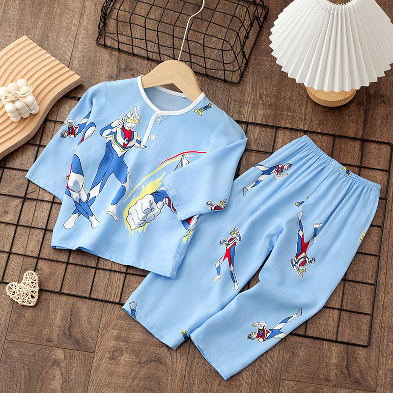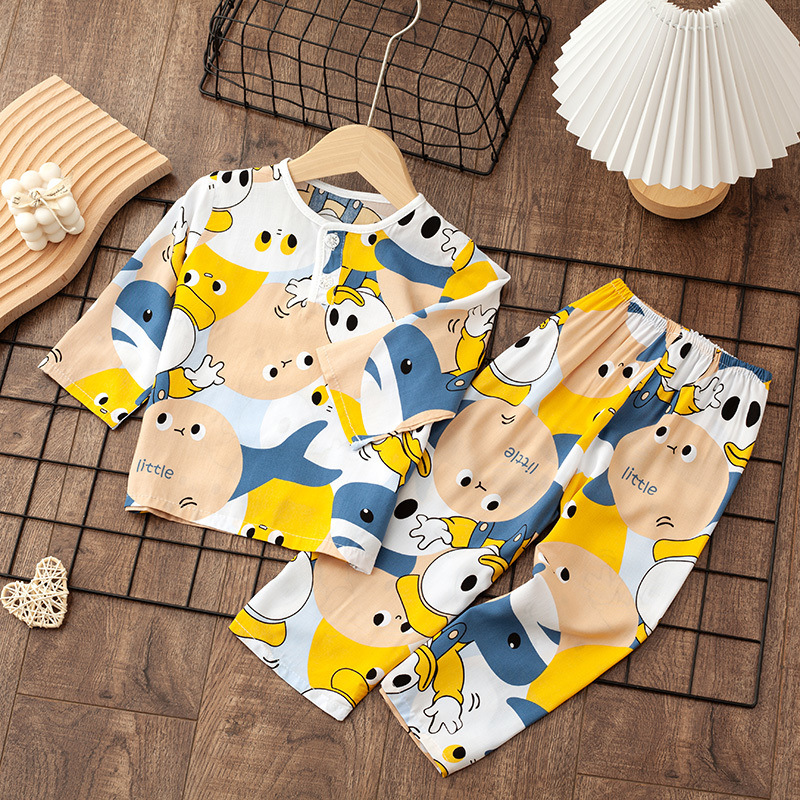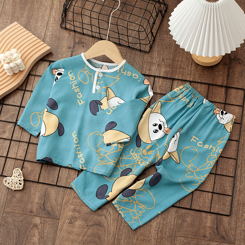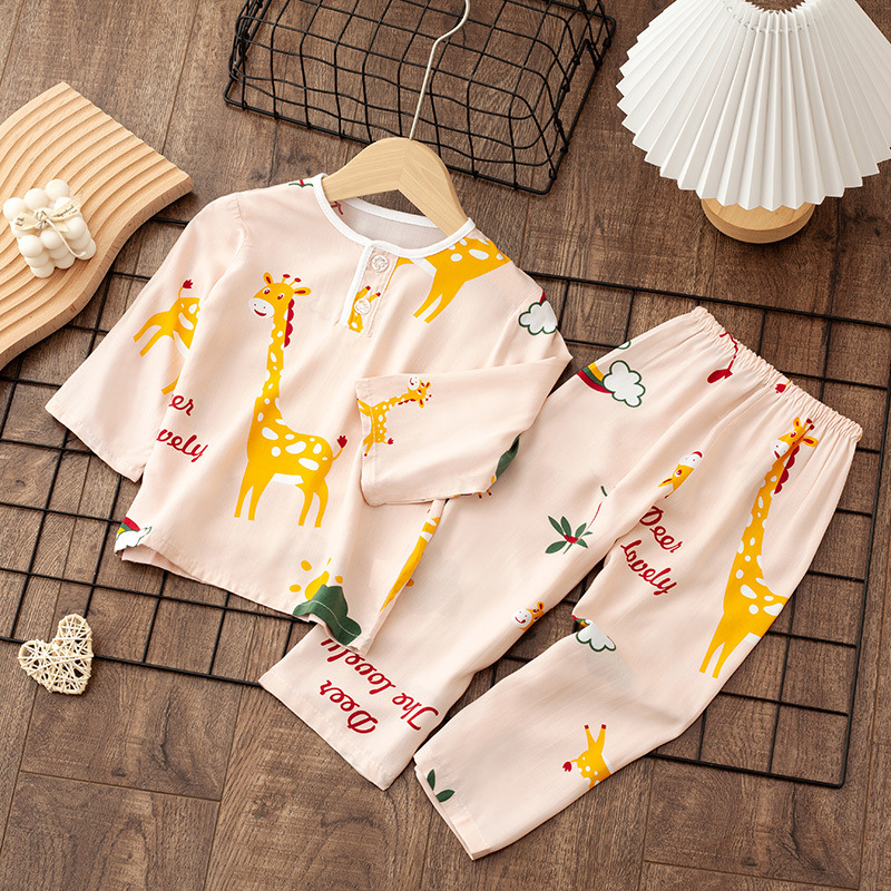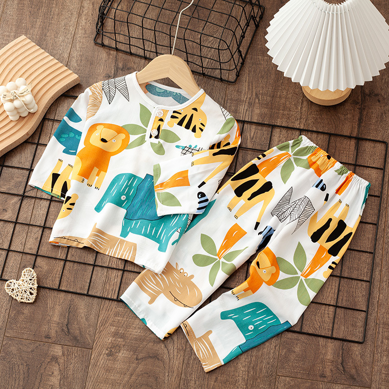 소년 소녀를위한 여름 레이온 어린이 잠옷 중소형 어린이 면 실크 얇은 홈 의류 소년 아기 긴팔 세트